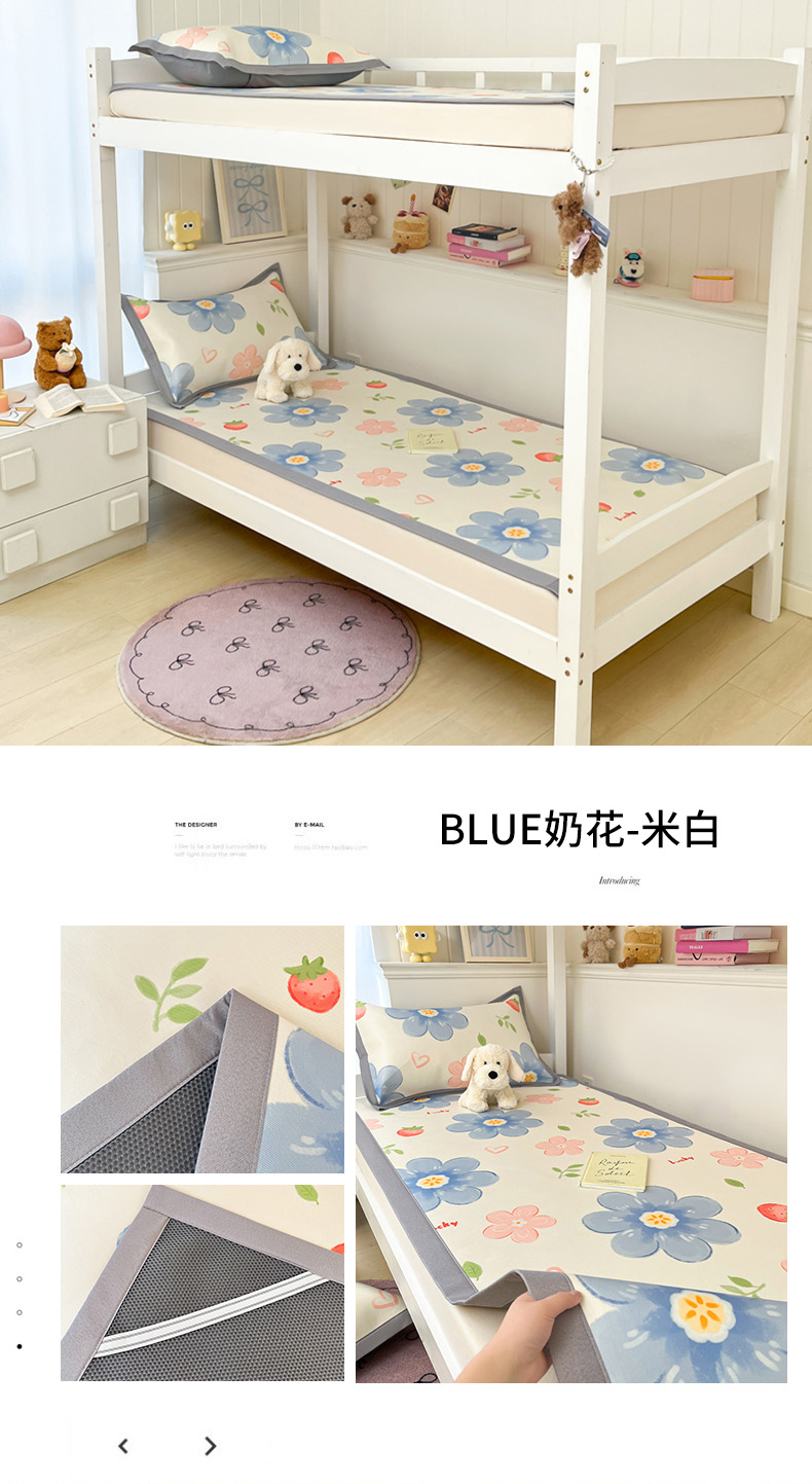 商品名称:川悦生活2025新款600D立体宽边印花冰丝席学生床 blue奶花-米白