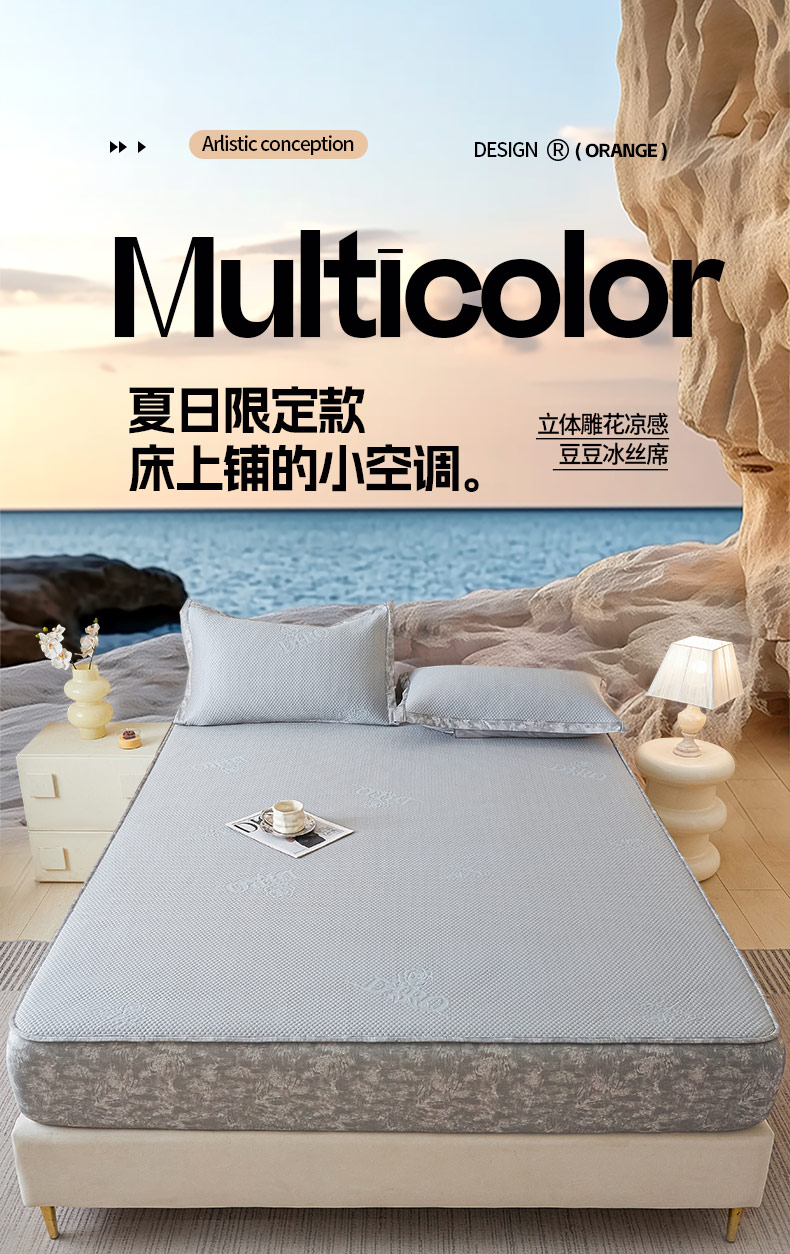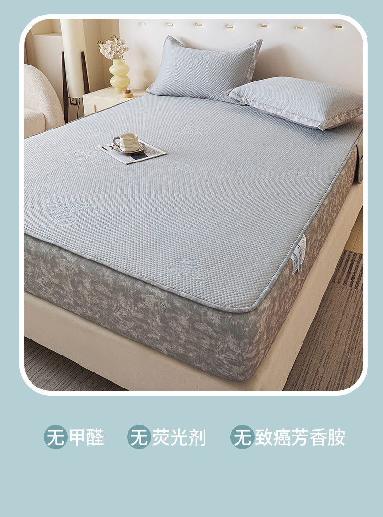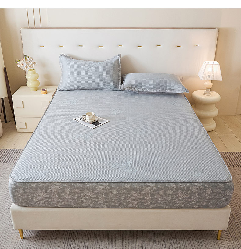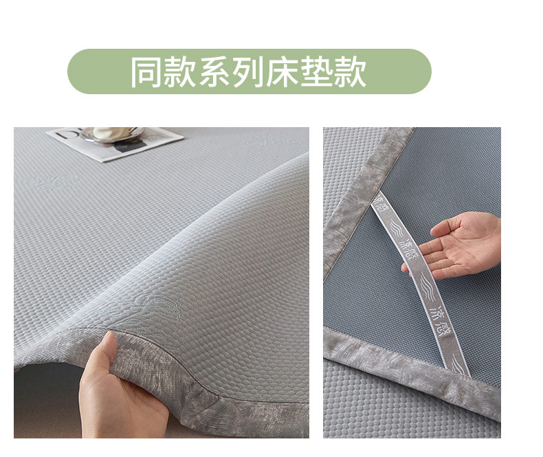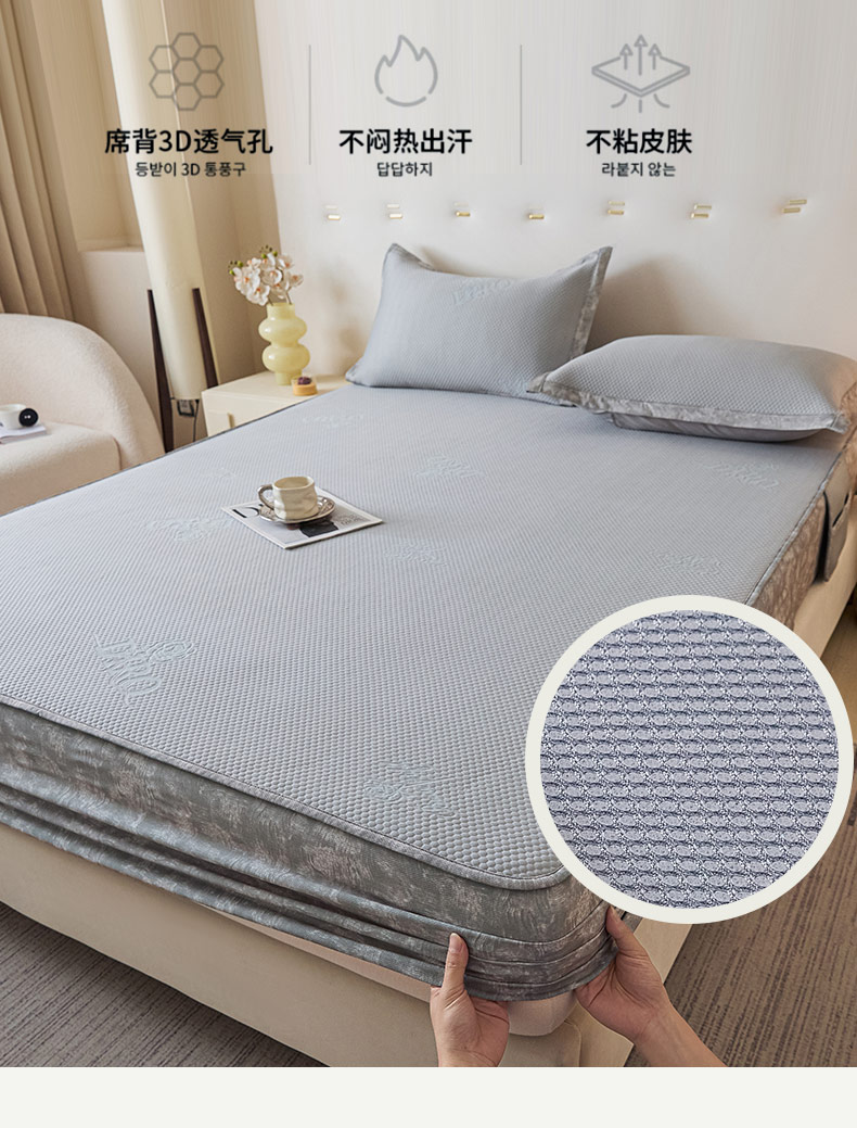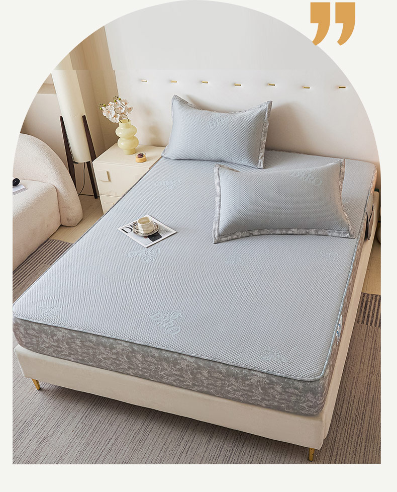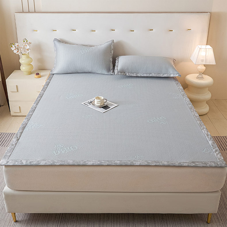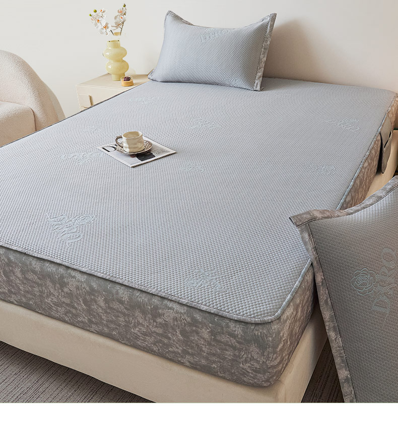 鑫琪莱 2025新款5D立体雕花凉感豆豆冰丝席凉席席子系列 床笠款-玫瑰-雅灰