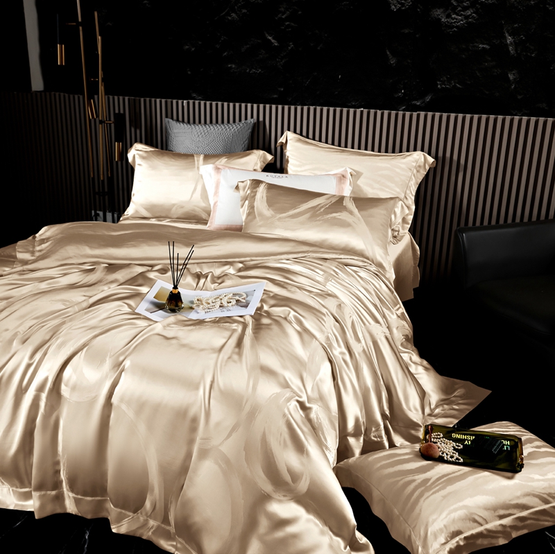 商品名称:晋瑞 红顶鹅绒馆 2025真丝天丝大提花四件套 芳华香槟