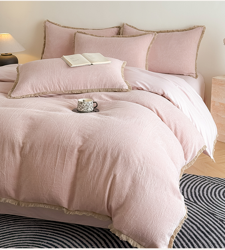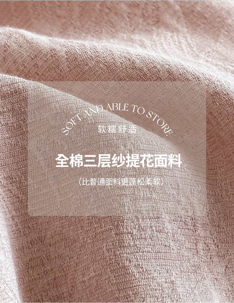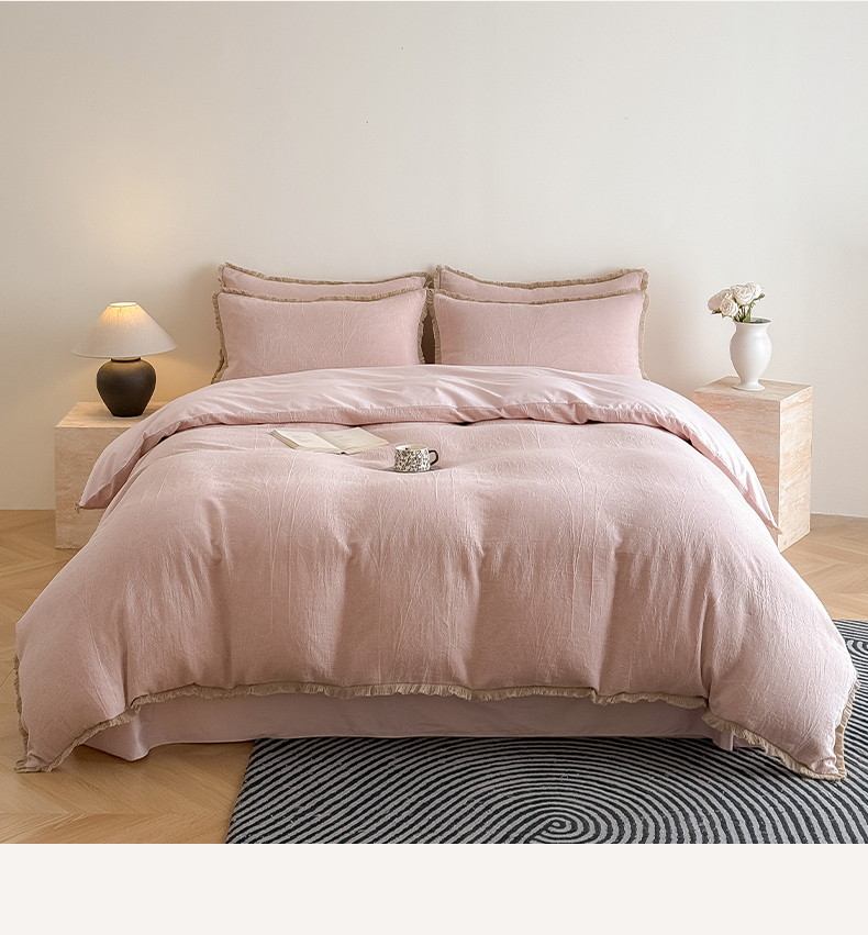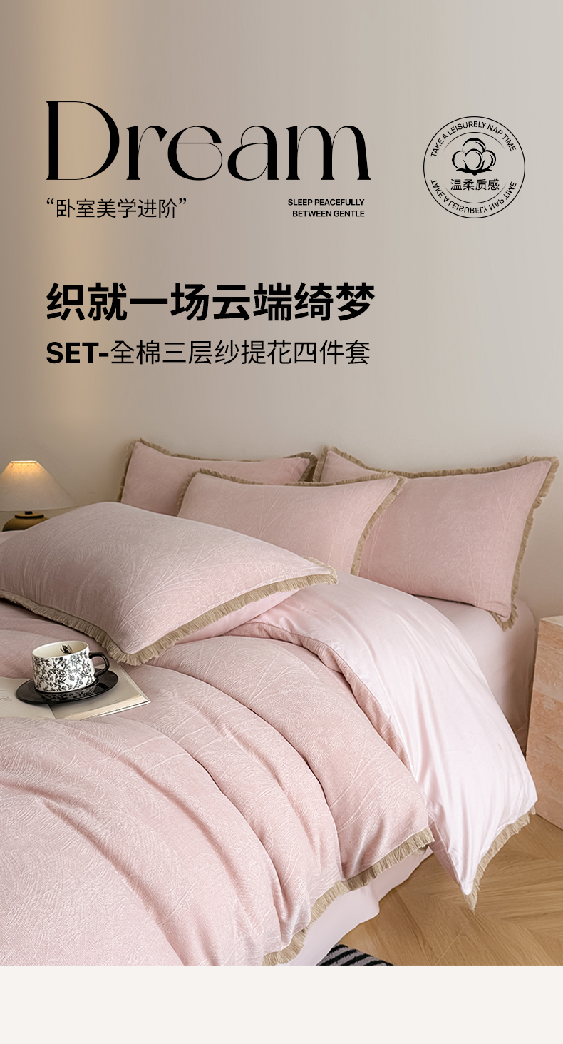 商品名称:极简 2025新款全棉三层纱提花四件套 西雅图-柔粉