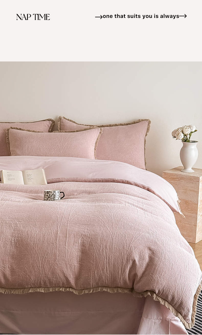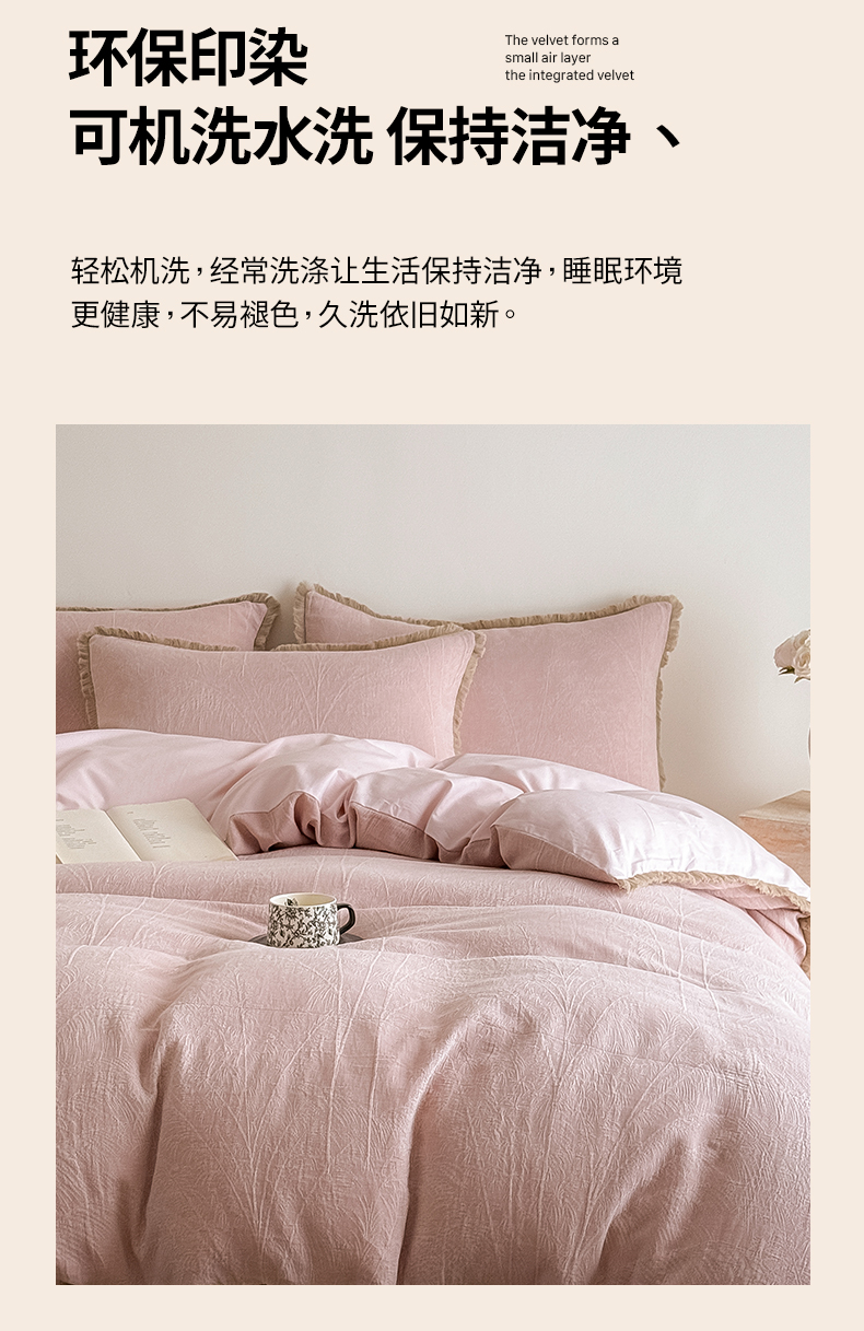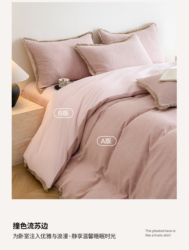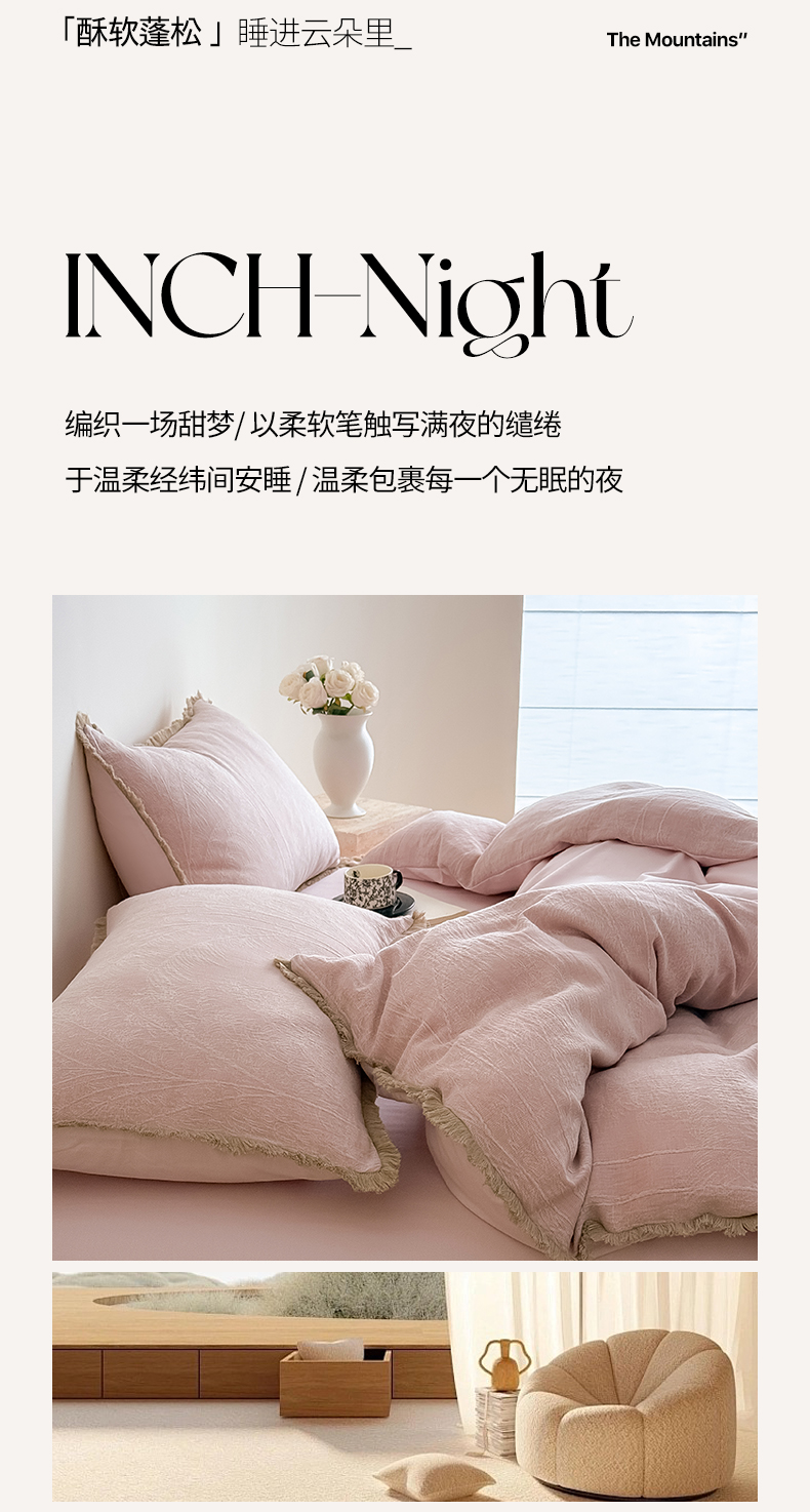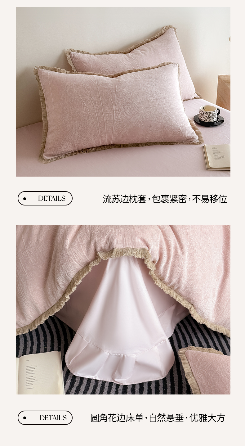 极简 2025新款全棉三层纱提花四件套 西雅图-柔粉