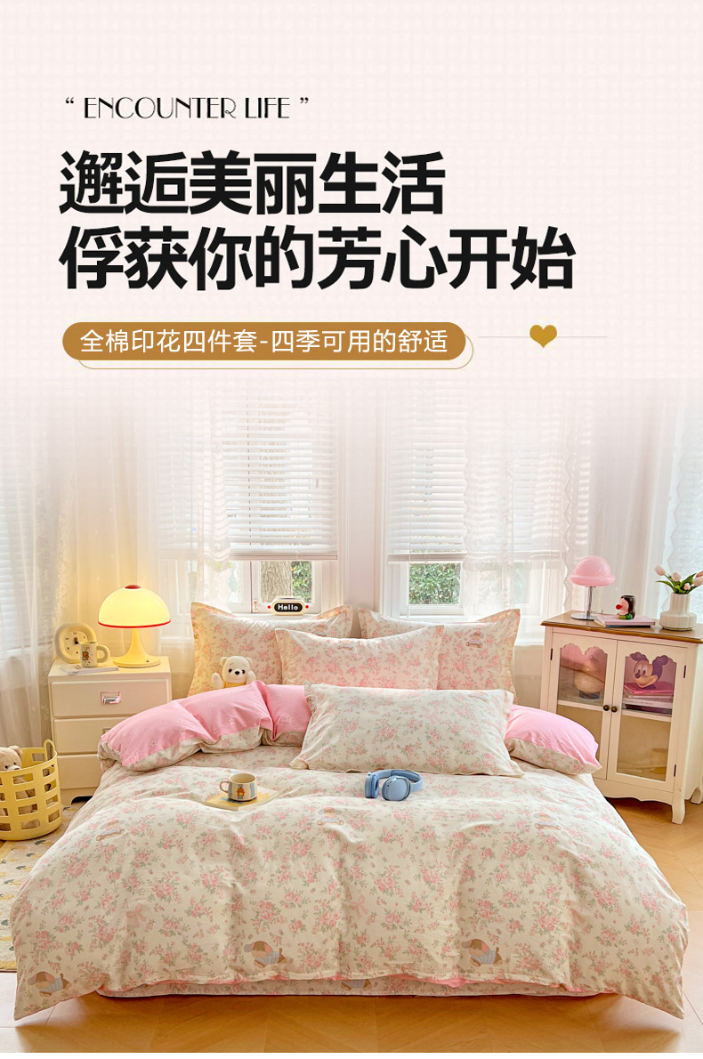 (总)世爵 2026春夏新款全棉纯棉印花小清新四件套,艾薇儿,海纳百川,度假时光,北欧映像,护花使者,布朗熊,风的印季,城南花开,花色伊人,花样年华,花叶倾城-粉,花叶倾城-蓝,花园兔,吉祥兔,可爱联盟,可爱萌宠,恐龙乐园,恐龙世界,漫步云端,梦里星光-灰,秘境熊宝,妙语花香,墨尔本,木棉花-绿,宁夏花苒,浓情玫瑰,盛夏晚晴,碎花拾影,天空之城,田园小兔,仙本娜,香草之恋,星空印记,尤里卡,宇宙小熊,竹林熊猫
