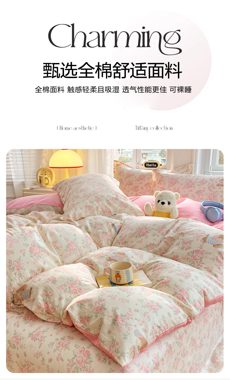(总)世爵 2025新款全棉印花小清新套件系列-四件套,艾薇儿,爱枝花语,繁花,风的印季,护花使者,花样年华,花叶倾城-粉,花叶倾城-蓝,花园派对-米,吉祥兔,静看花颜,凯蒂猫-米,可爱联盟,洛丽塔,漫步云端,木棉花-绿,南瓜派,浓情玫瑰,清甜草莓,时光序曲,水蜜桃,天使之心,田园趣事,星空印记,尤里卡,云萌小兔,竹林熊猫