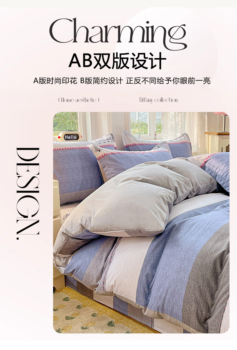 (总)世爵 2026新款10A抗菌亲肤水洗棉双拼四件套,卡其蓝,绿浅灰,墨松灰,暖驼,浅灰,深灰,深灰绿,深蓝灰,天空蓝浅灰,远山绿,远天蓝