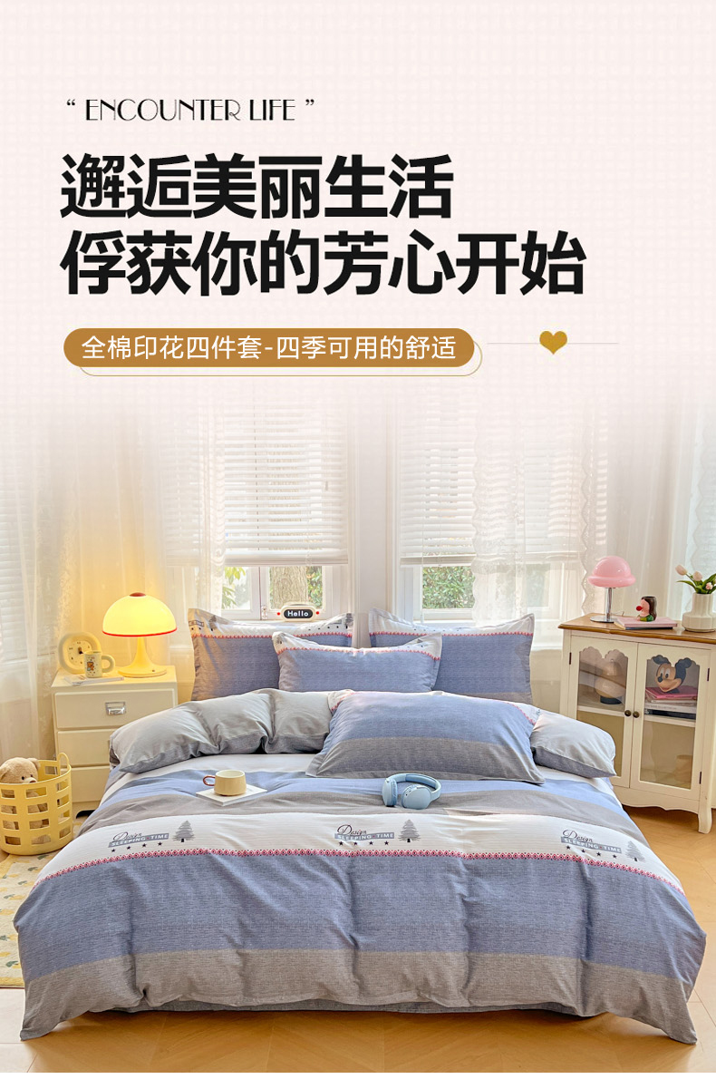 商品名称:世爵 2025新款全棉印花小清新套件系列-四件套 尤里卡