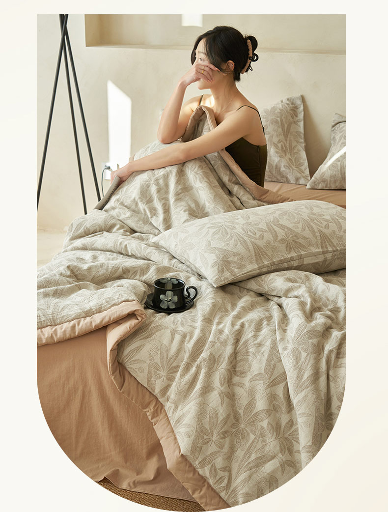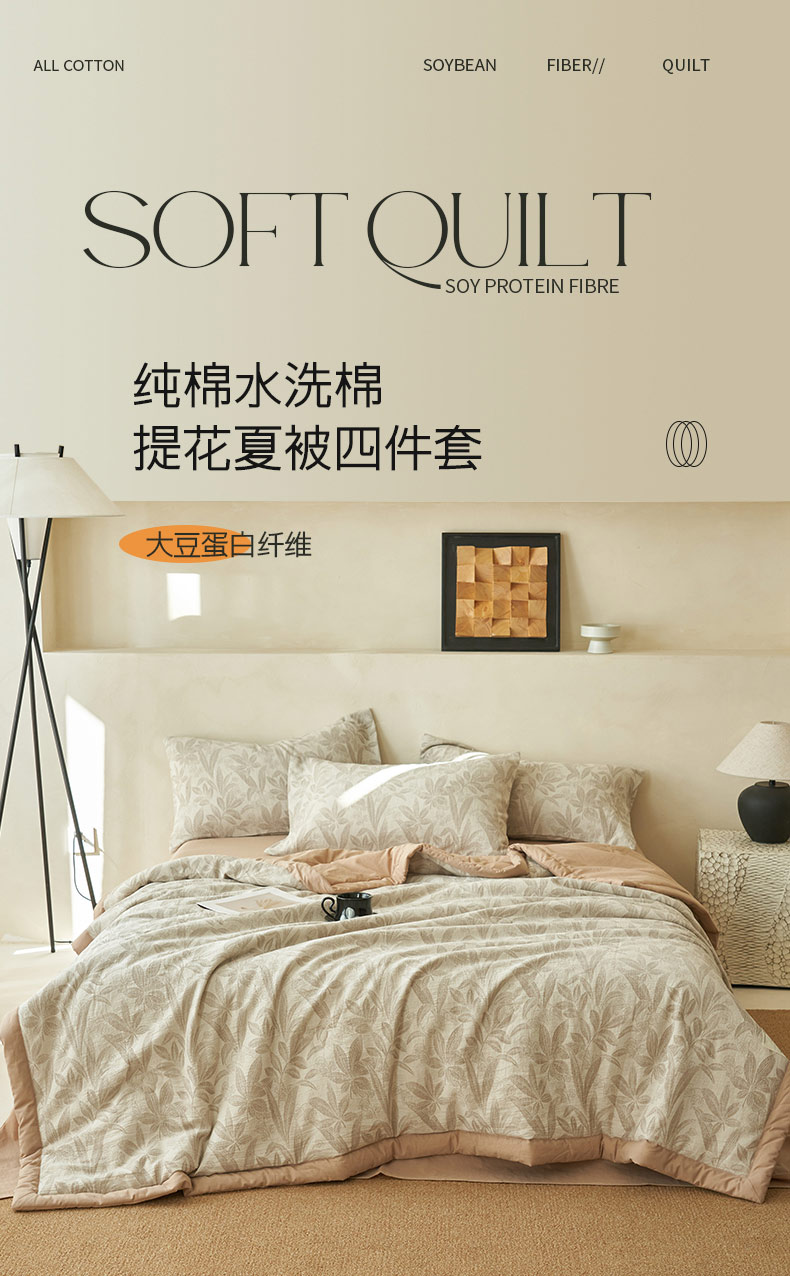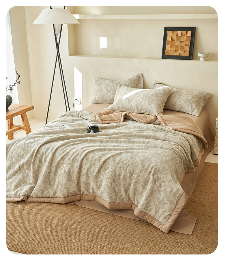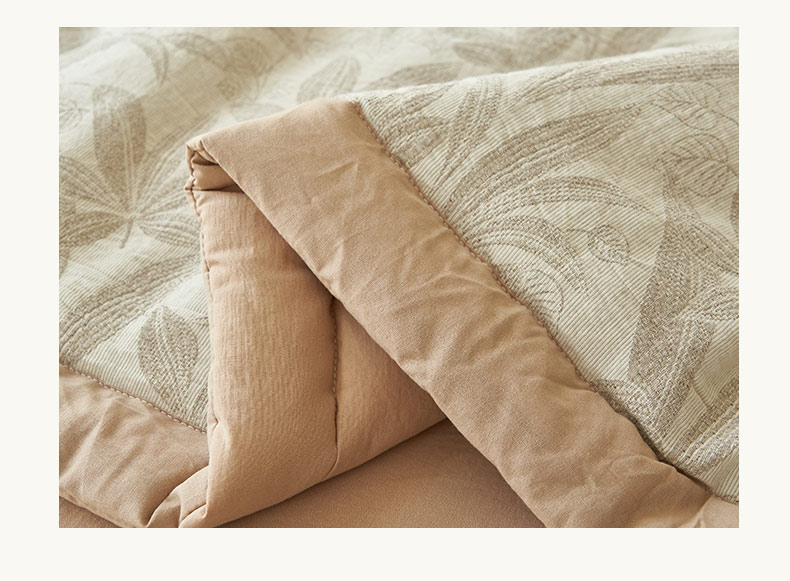 • 91家纺网 家纺一手货源 找家纺 寐绸家纺 2025新款纯棉水洗棉三层暗香提花大豆纤维夏被四件套 暗香-驼色