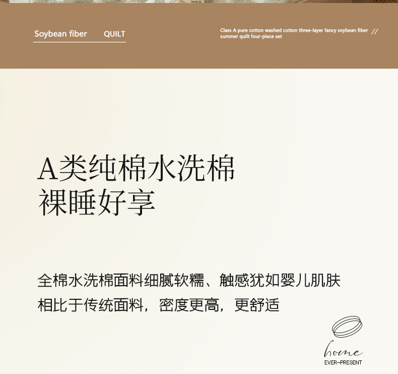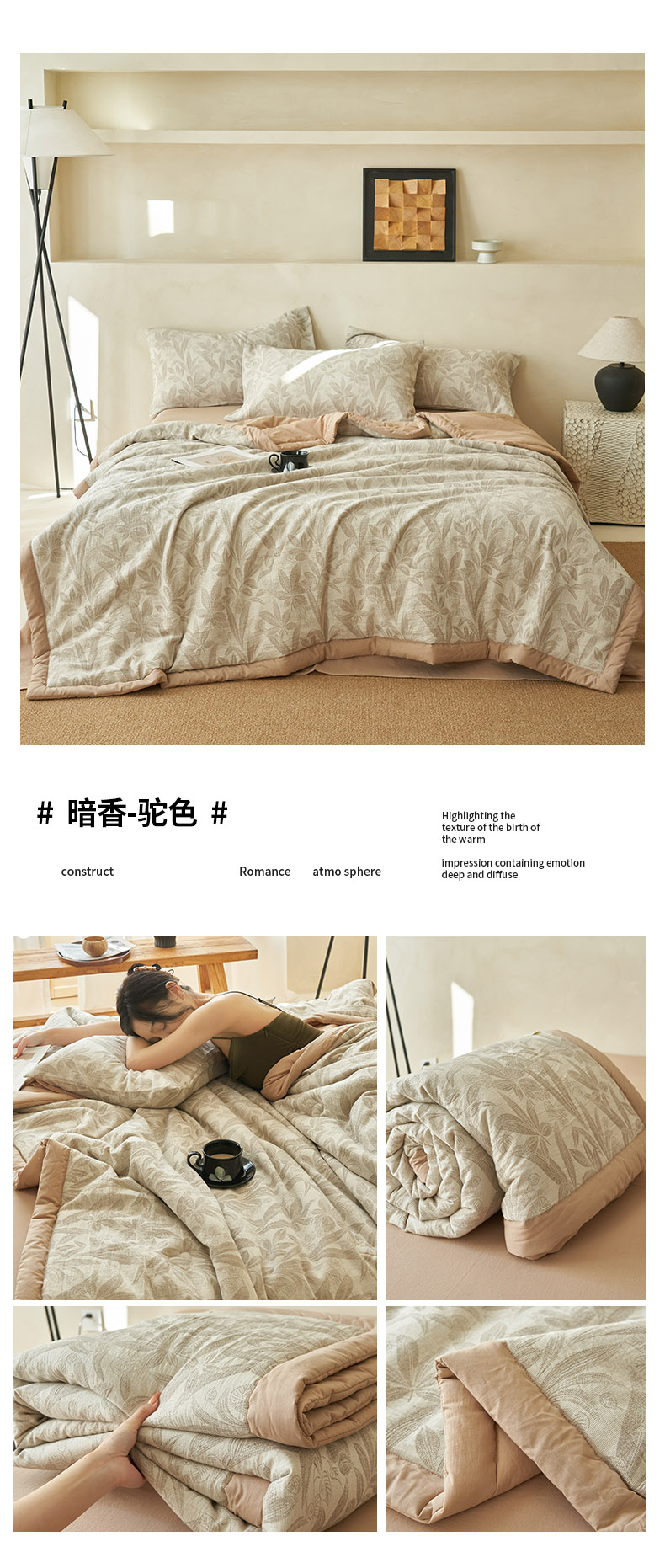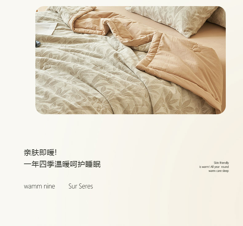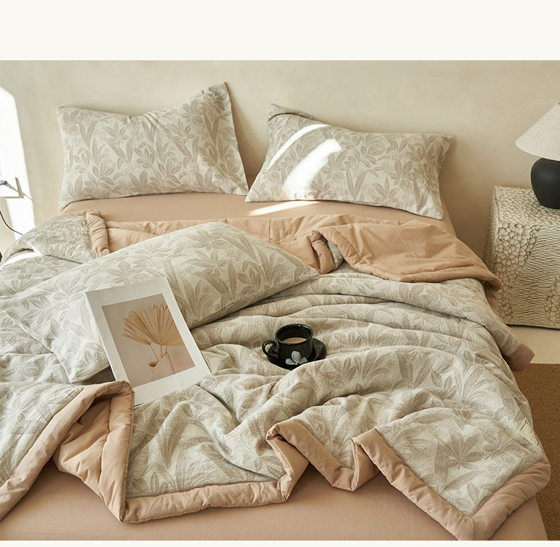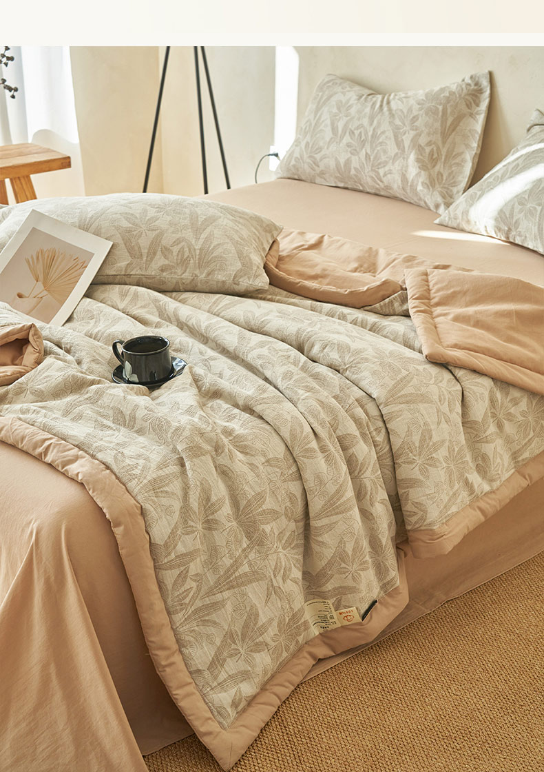 • 91家纺网 家纺一手货源 找家纺 寐绸家纺 2025新款纯棉水洗棉三层暗香提花大豆纤维夏被四件套 暗香-驼色