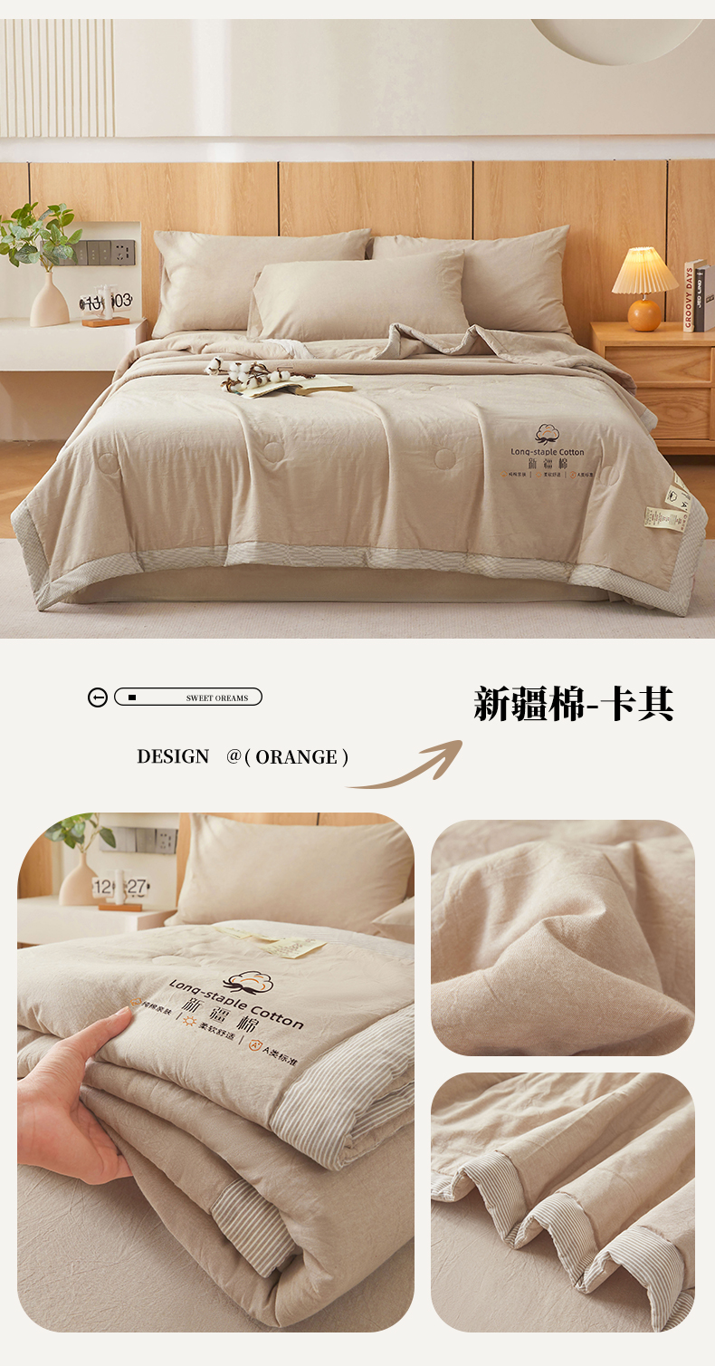 创优家纺 2025新款无印风格子新疆棉夏被空调被纯棉花被夏被子薄被芯水洗棉包检测 新疆棉-卡其