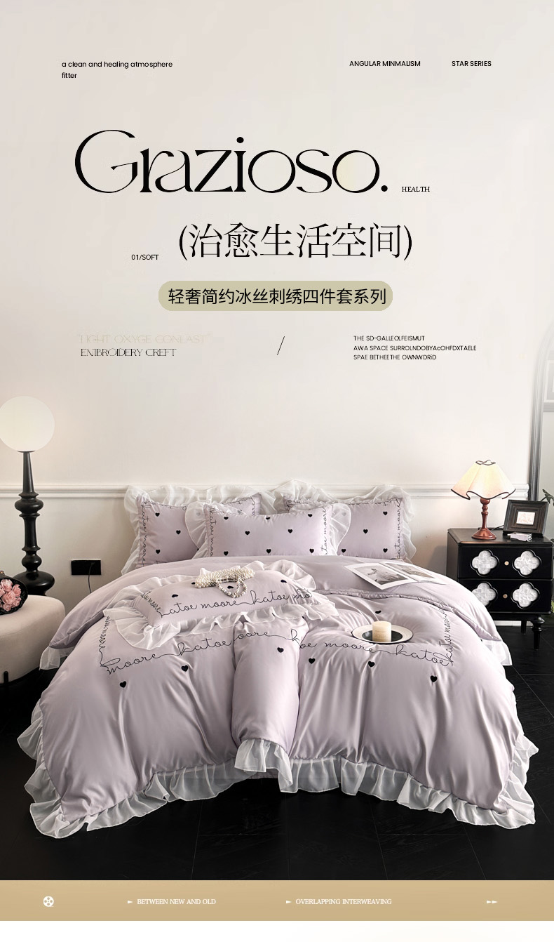 (总)菲儿家纺 2025新款轻奢简约冰丝刺绣四件套-铃兰,铃兰-灰,铃兰-兰,铃兰-粉,铃兰-米白,铃兰-紫