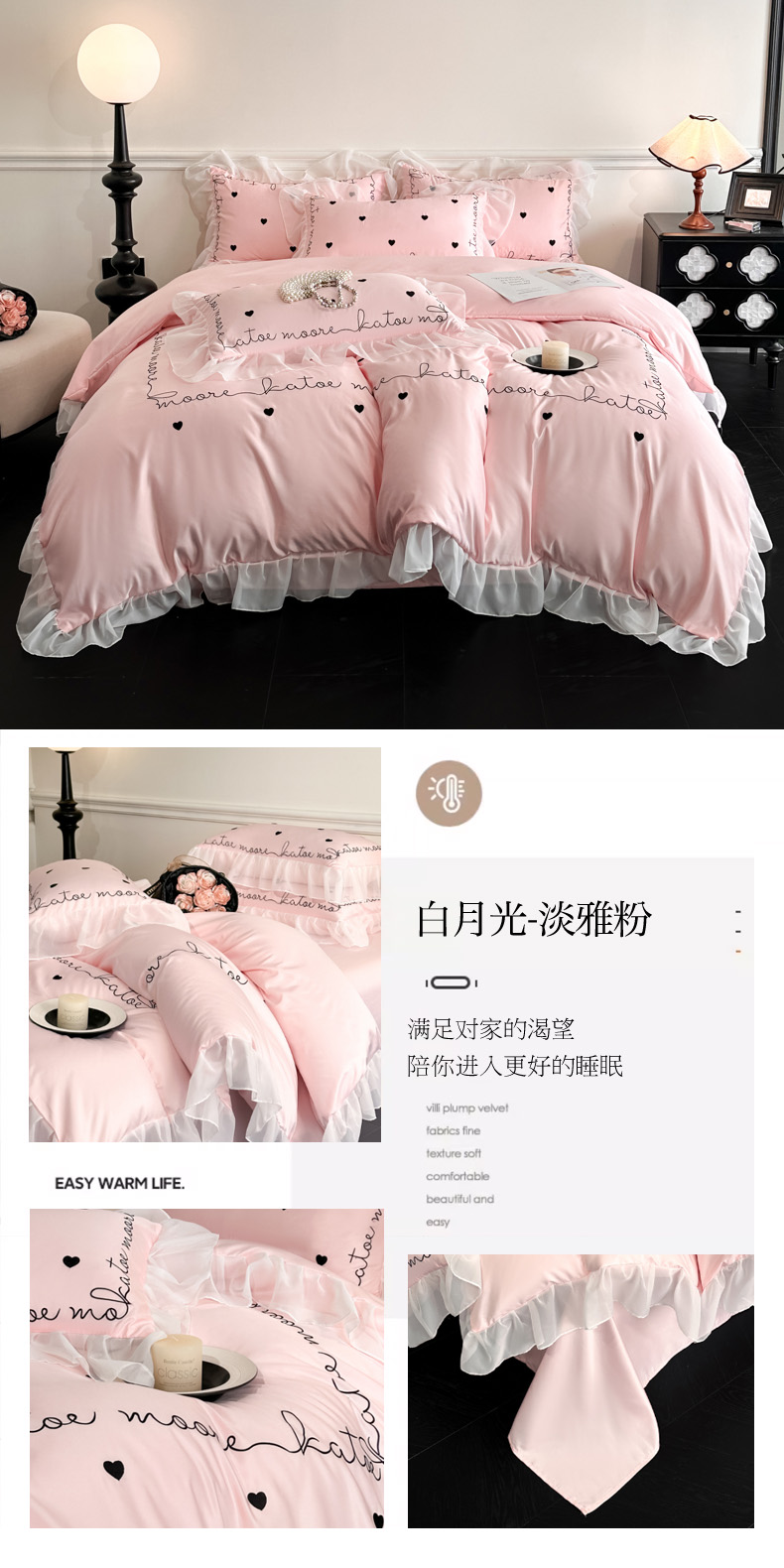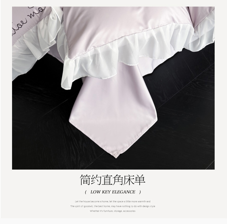 (总)菲儿家纺 2023新款直播高克重纯色牛奶绒平绣花边四件套-黛茜,黛茜-粉,黛茜-黄,黛茜-蓝,黛茜-绿,黛茜-紫