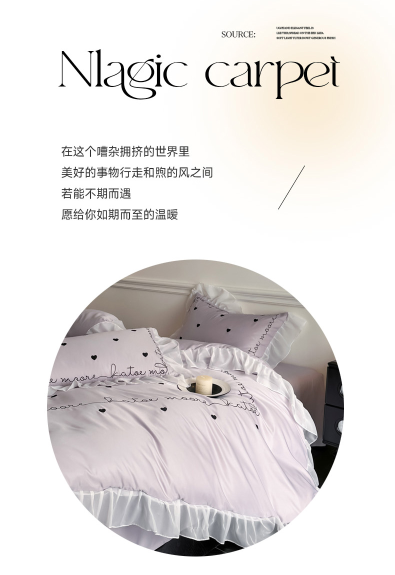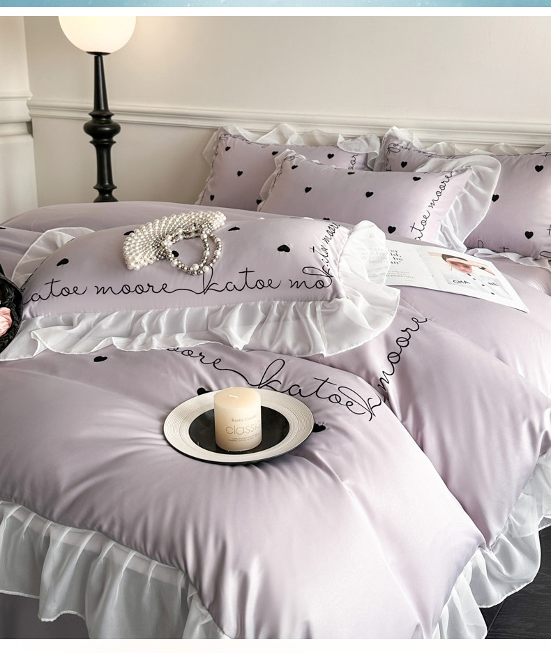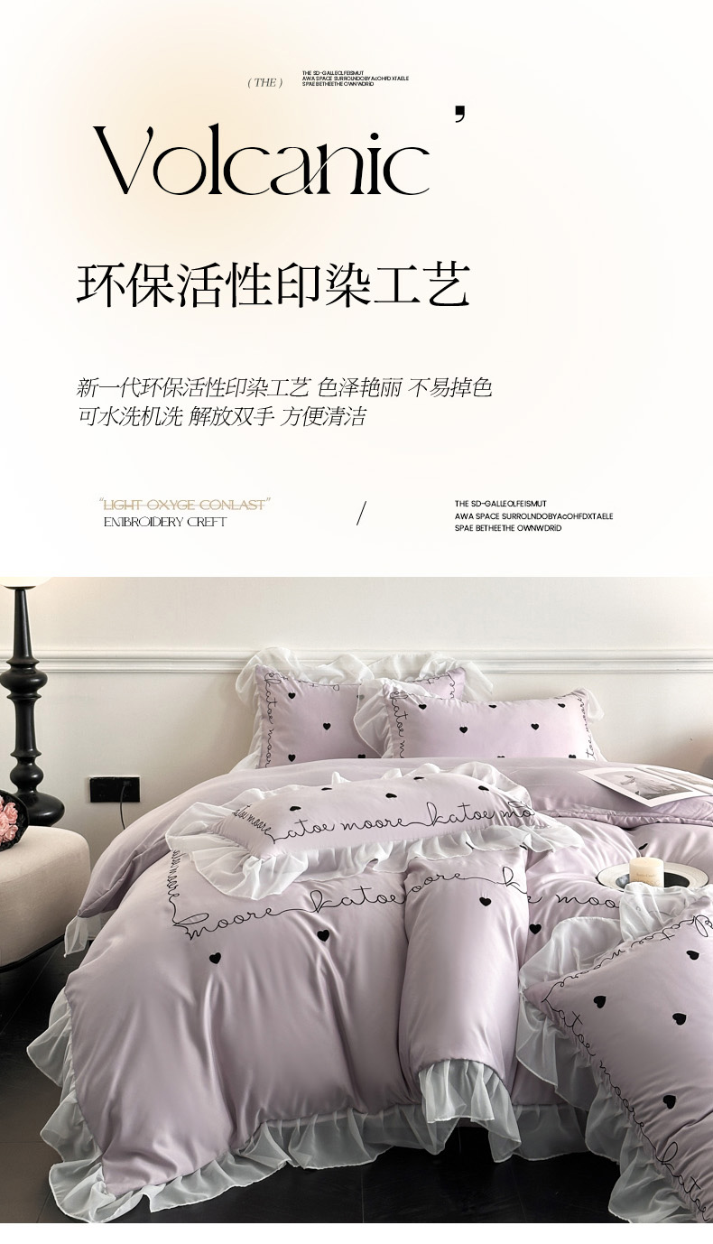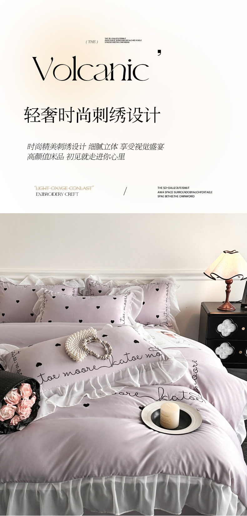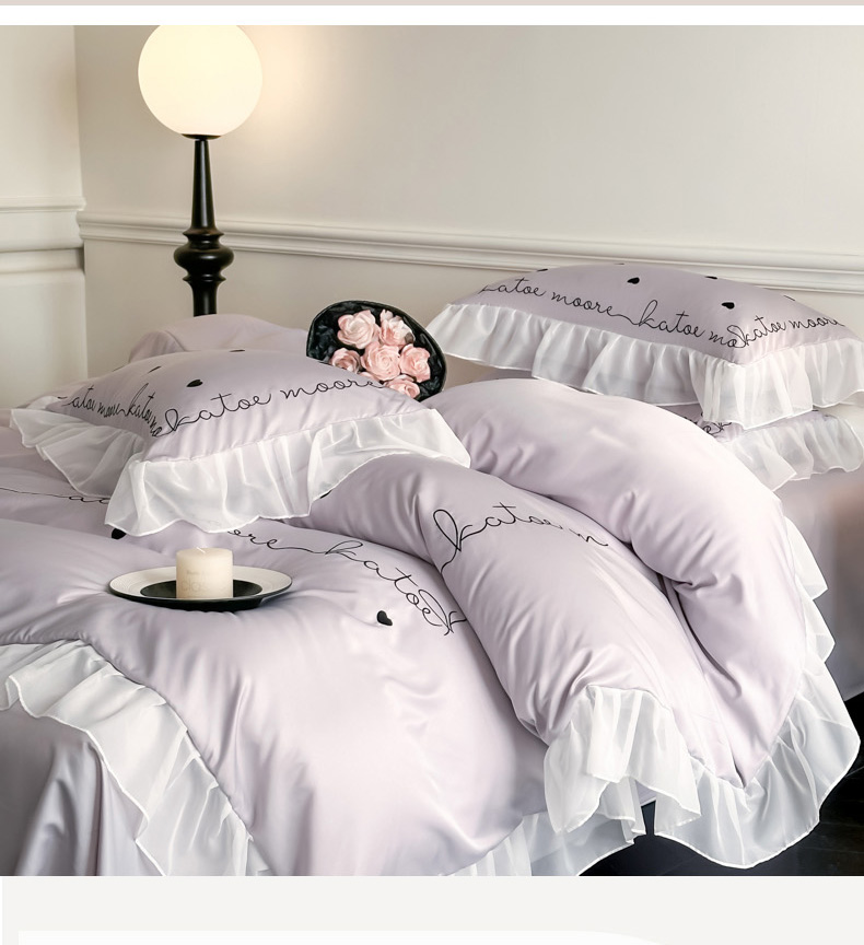 菲儿家纺 2025新款轻奢简约冰丝刺绣四件套-白月光 白月光-优雅紫