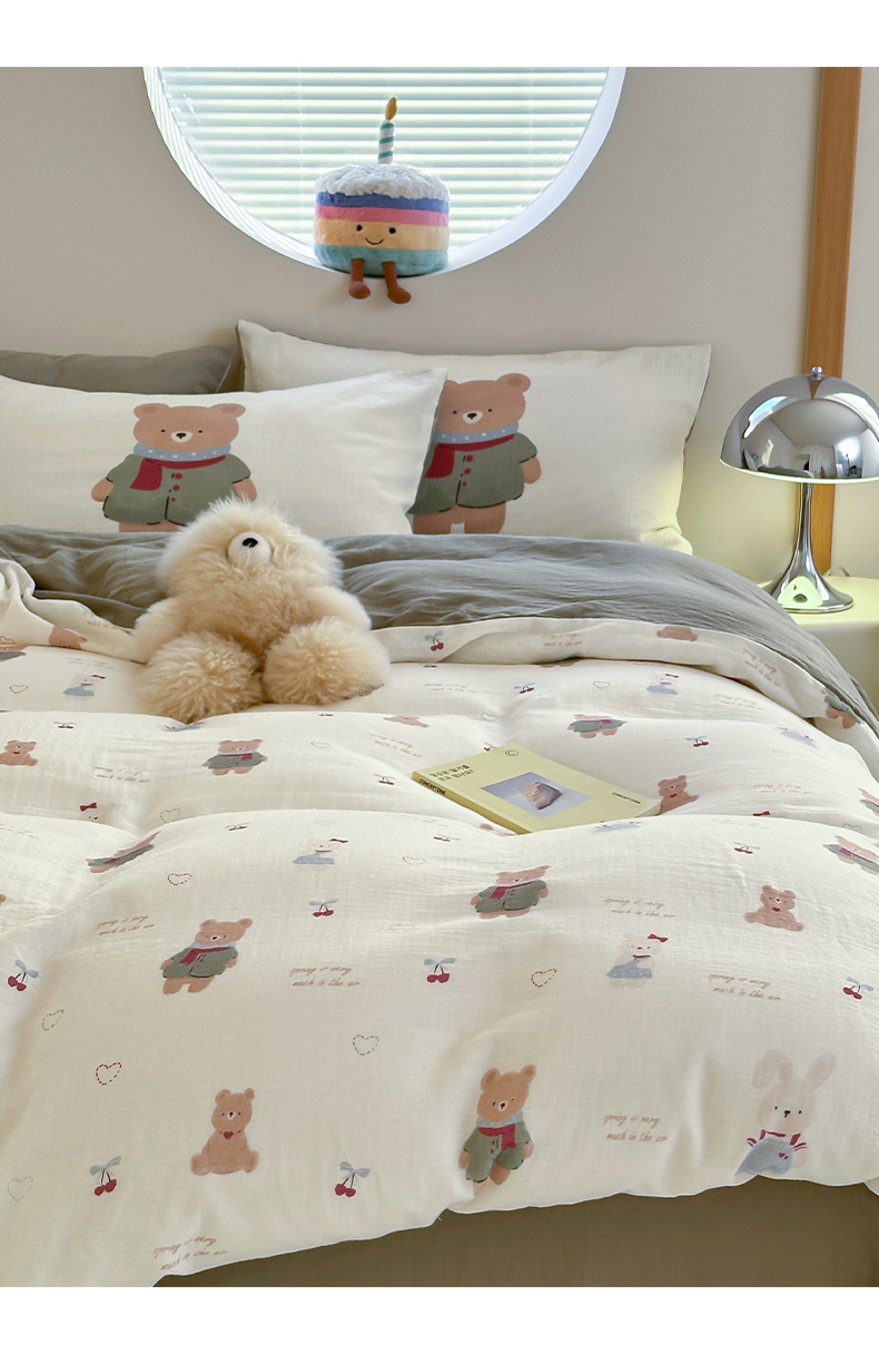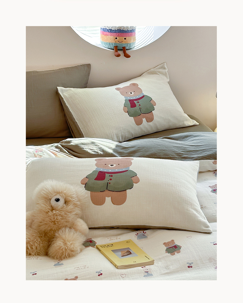 商品名称:卡巴伦家纺 2025新款全棉皱皱纱大版卡通数码印花款四件套一 樱桃真甜-奶白