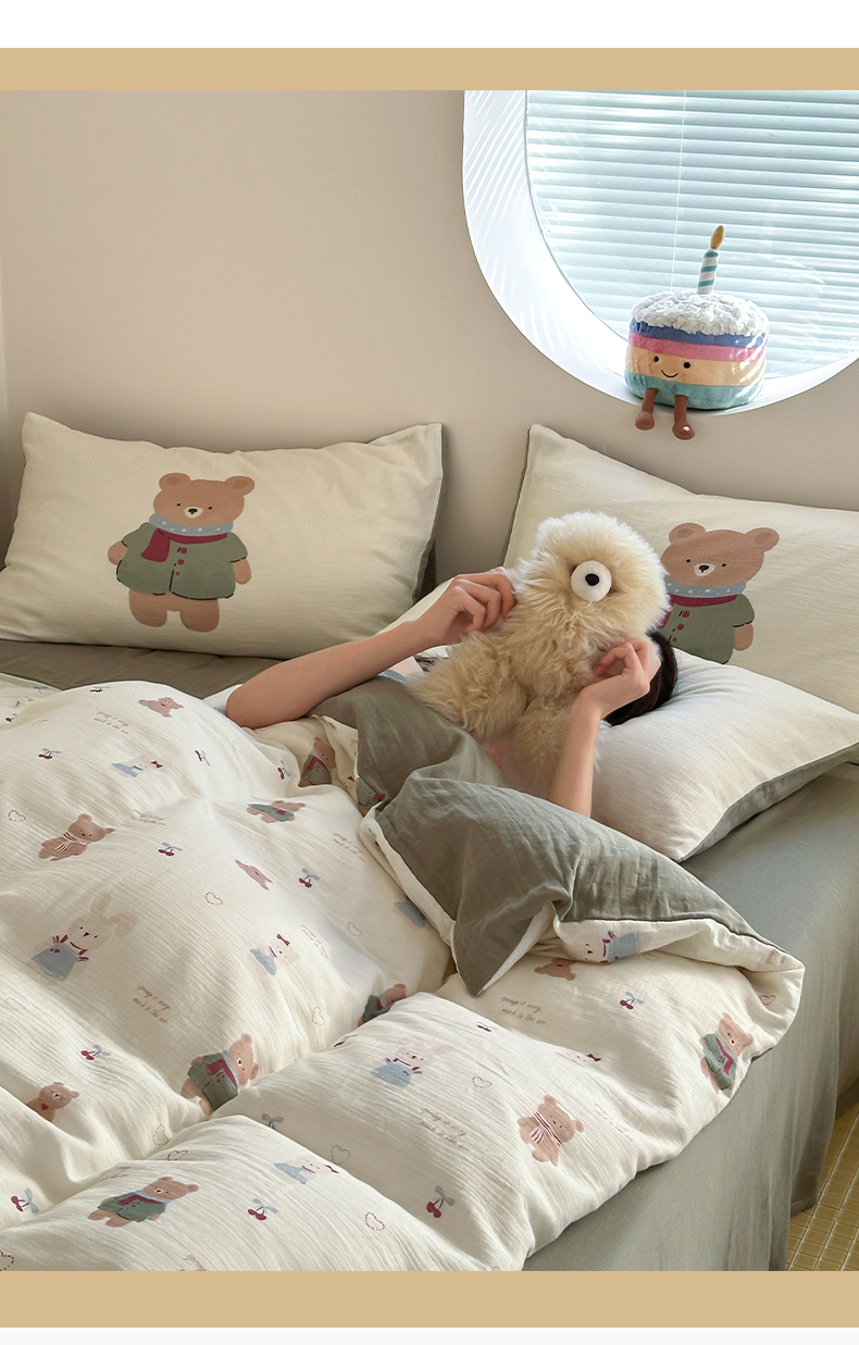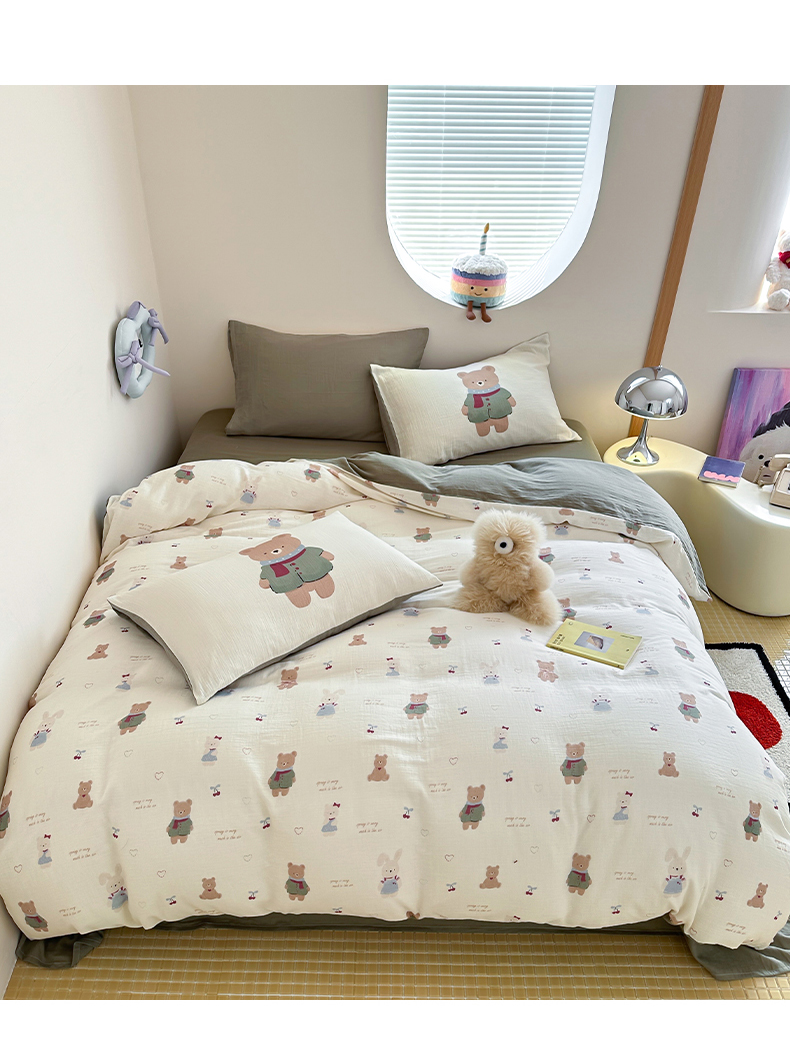 (总)卡巴伦家纺 2025新款全棉皱皱纱大版卡通数码印花款四件套一,洛可可兔-粉,班尼的花园-粉,班尼的花园-黄,漂亮的领结-绿,漂亮的领结-米白,熊猫噗噗-绿,樱桃真甜-奶白