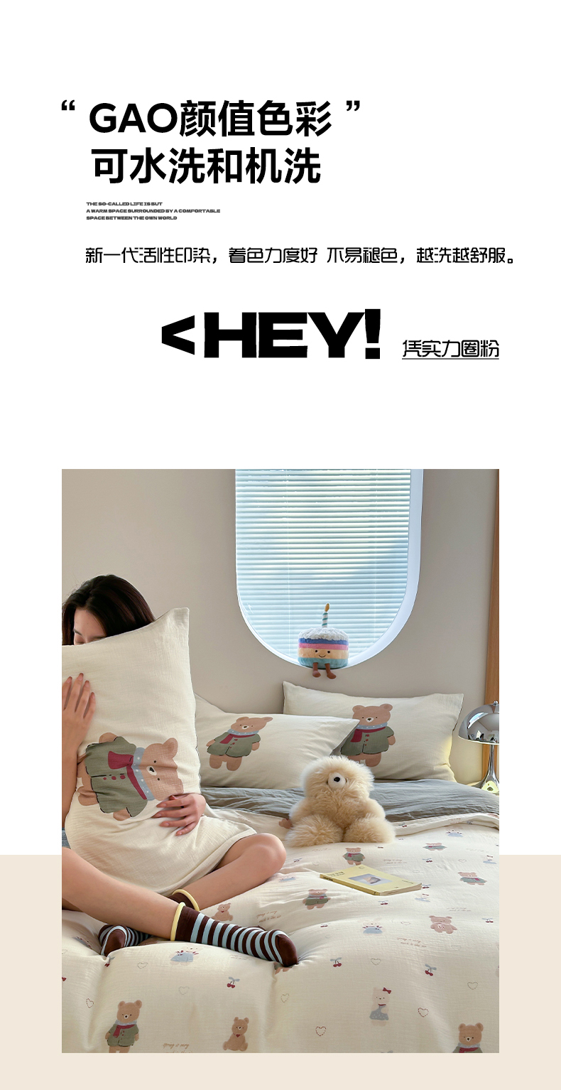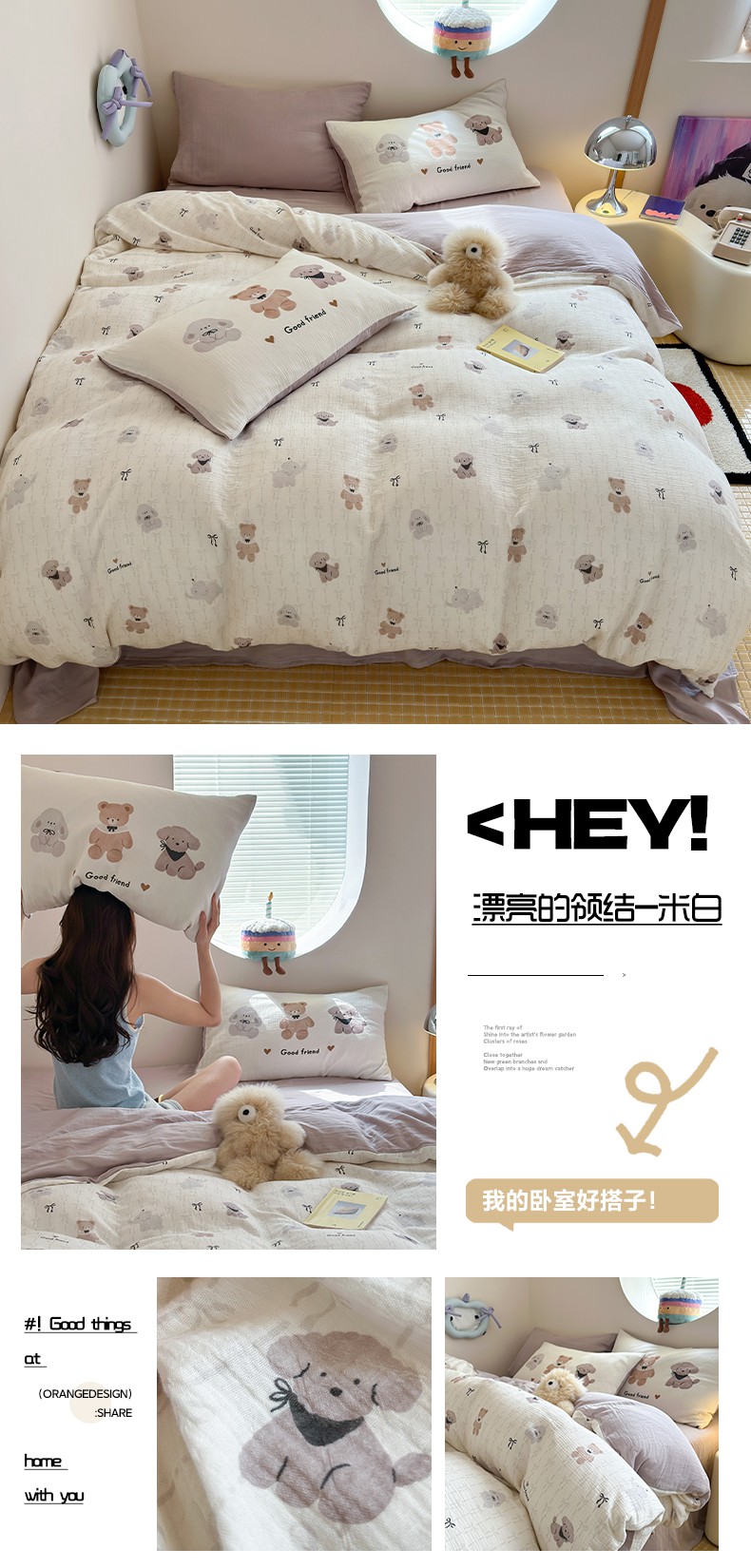 (总)卡巴伦家纺 2025新款全棉皱皱纱大版卡通数码印花款四件套二,酥酥熊-粉,腊肠总裁,生日万岁-粉,生日万岁-蓝,生日万岁-米,酥酥熊-米黄,汪汪掀被-灰,汪汪掀被-绿,小狗没烦恼