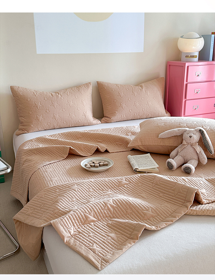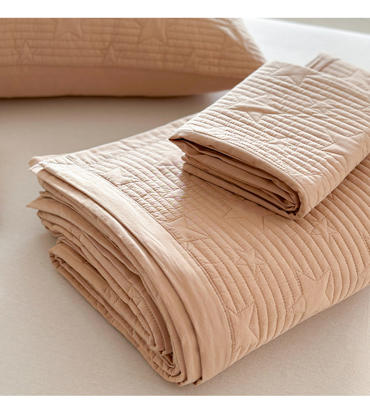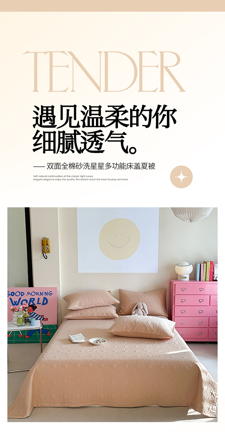 • 91家纺网 家纺一手货源 找家纺 漫调家纺 2025新款繁星水洗床盖夏被 繁星咖