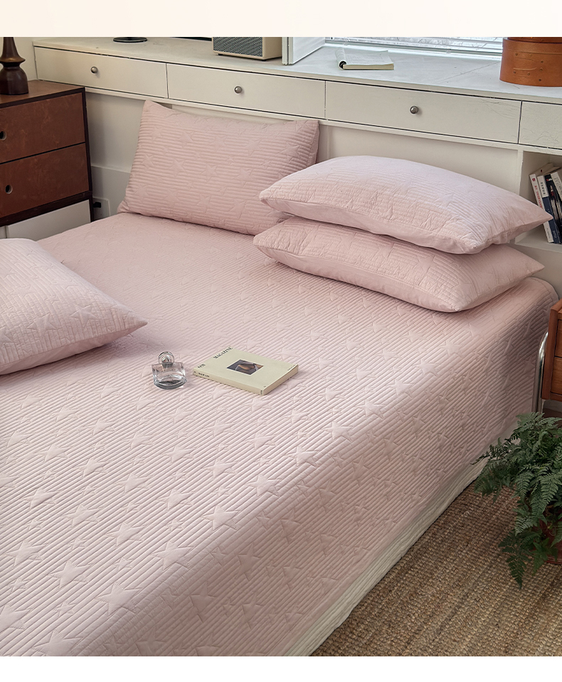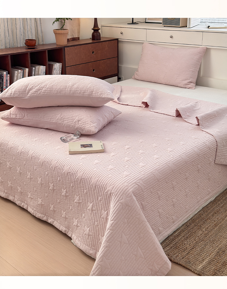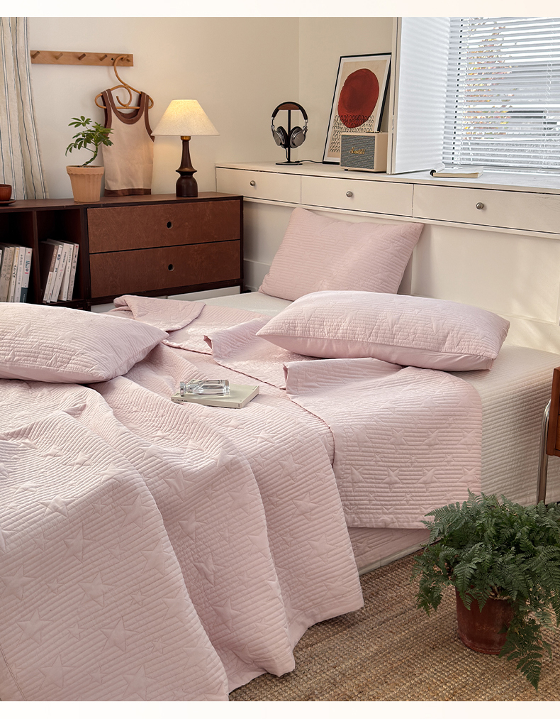 漫调家纺 2025新款繁星绗缝夏被 复古风实拍 繁星粉