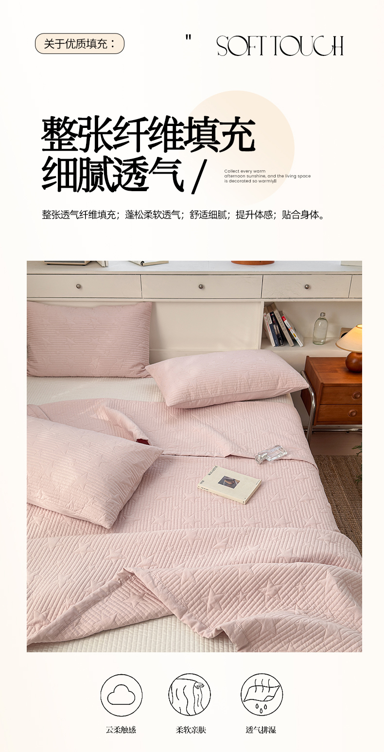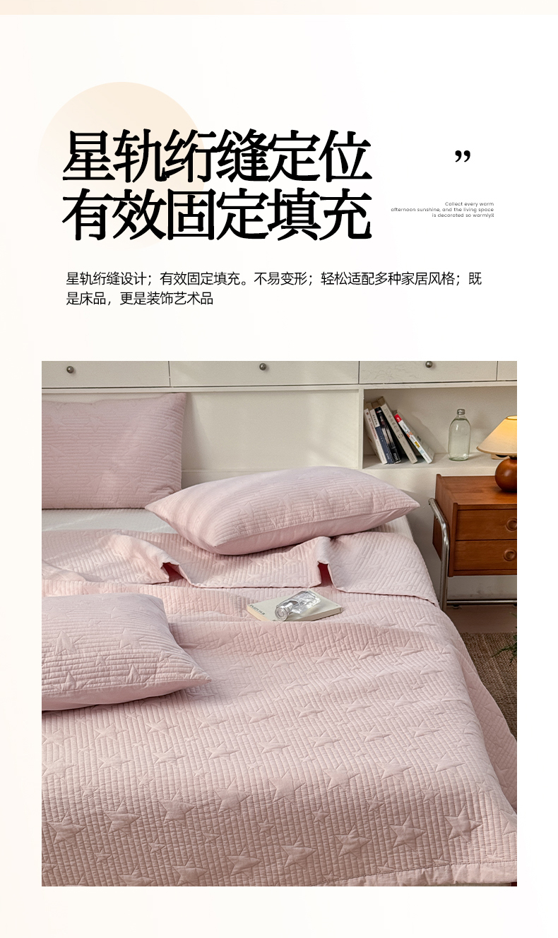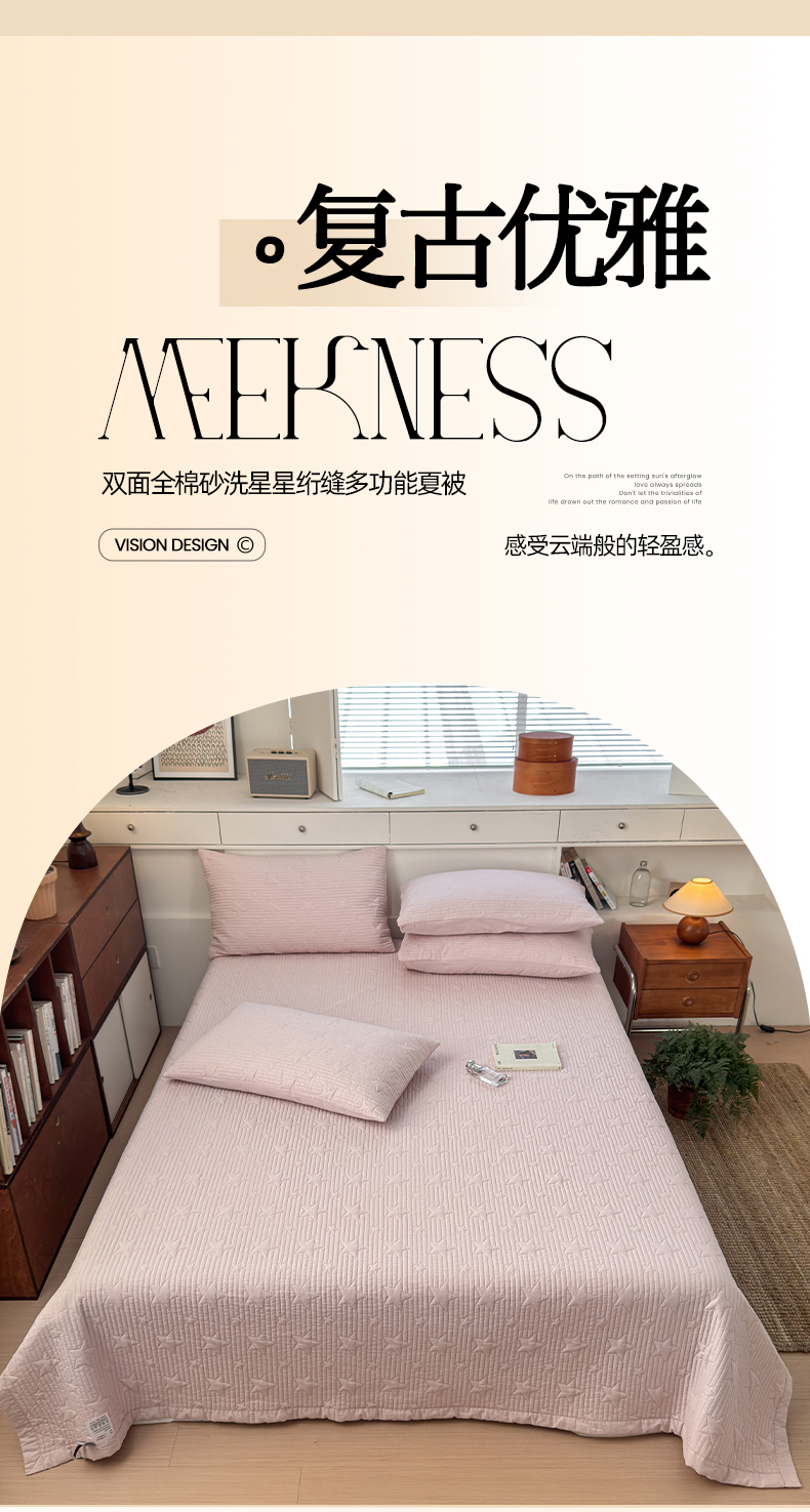 • 91家纺网 家纺一手货源 找家纺 漫调家纺 2025新款繁星绗缝夏被 复古风实拍 繁星粉