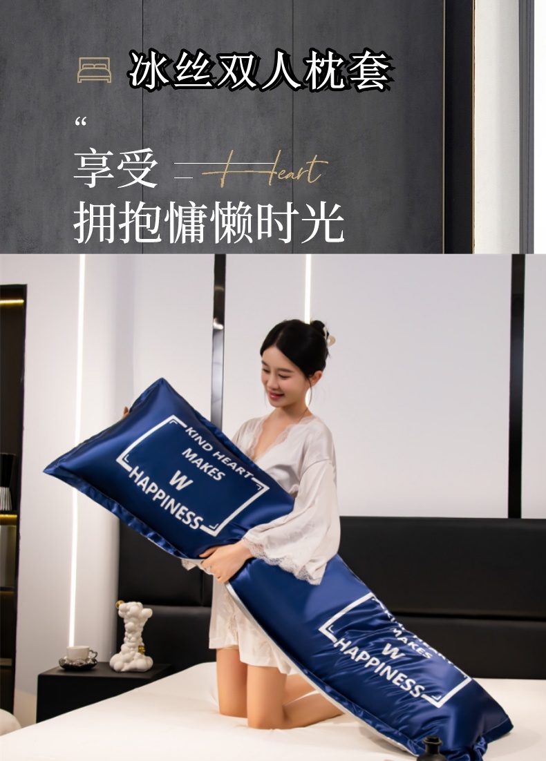 商品名称:梦舒羽 2025新款可水洗冰丝双人枕套凉爽情侣枕头套枕芯套 幸福时刻