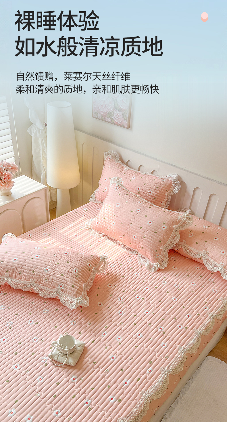 (总)麒豆豆2025新款凉感丝床笠式床裙乳胶凉席,白,粉,灰,蓝,绿,驼,玉,紫
