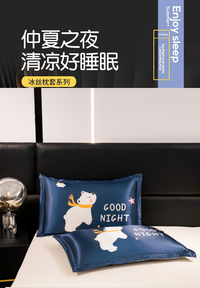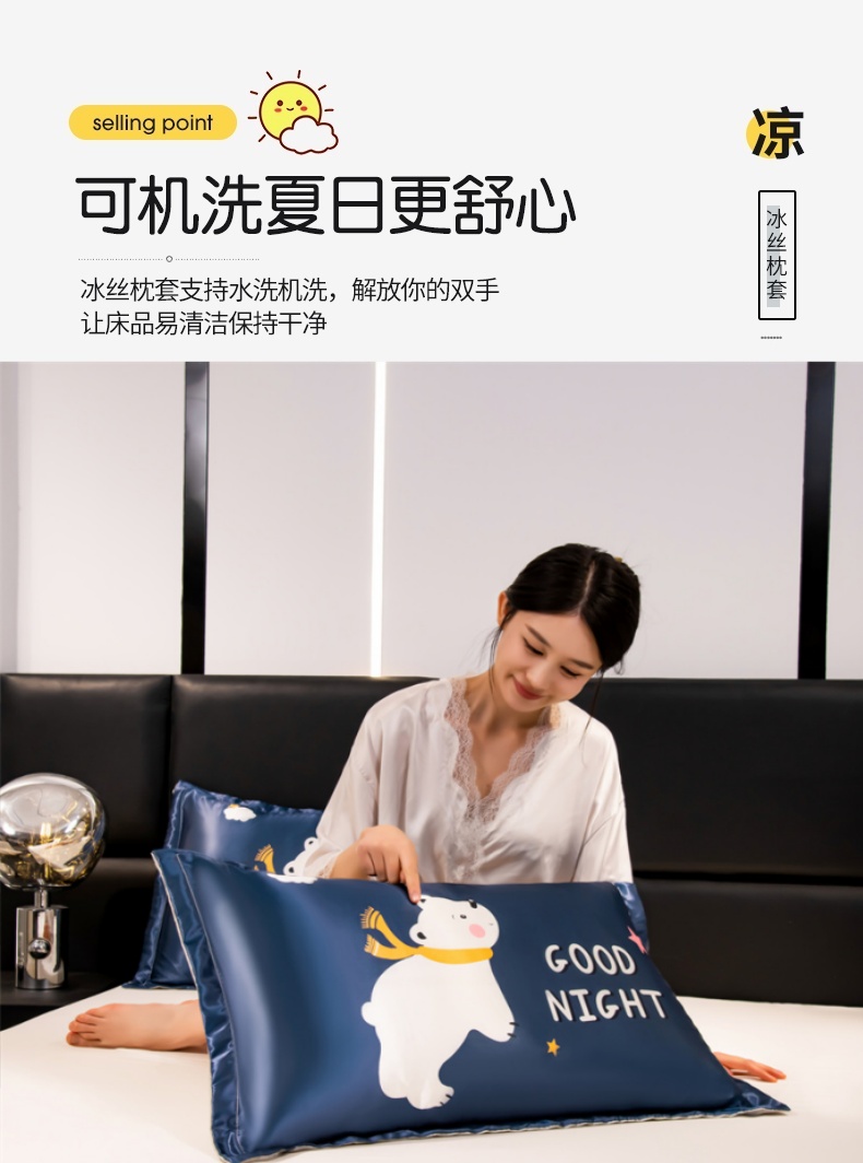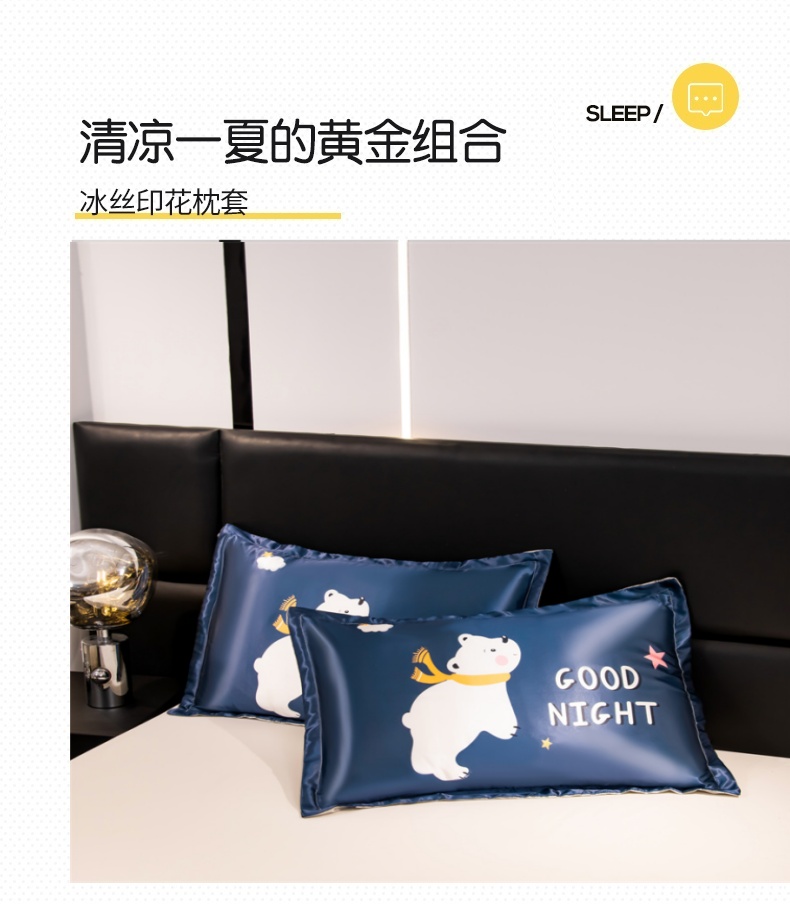 商品名称:圣比熊 2025新款可水洗冰丝卡通枕套宿舍48x74cm单人凉爽枕头套 北极熊