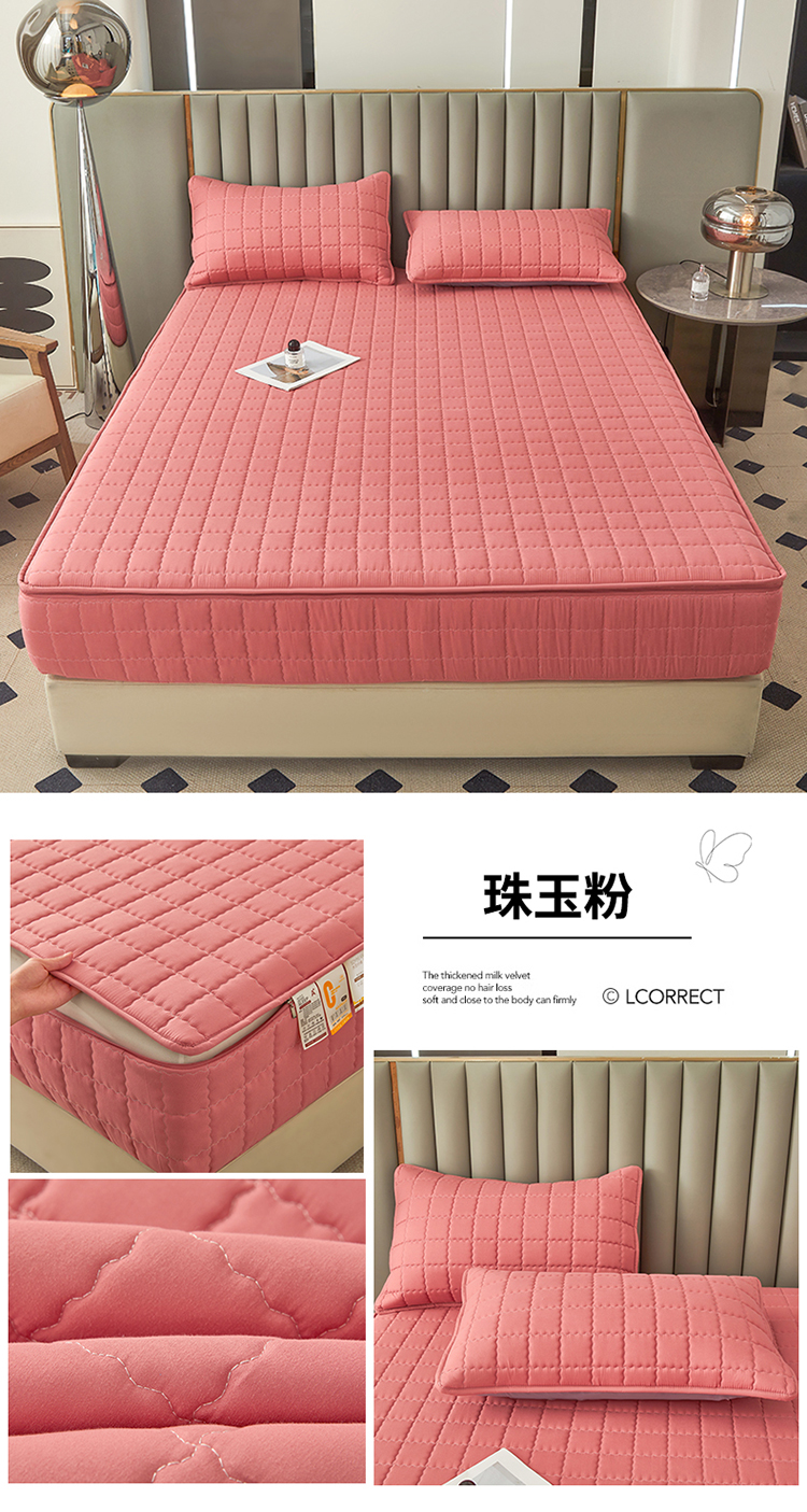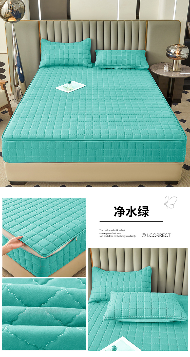 (总)欧邦 2025新款提花暖阳绒单床笠,苍穹蓝,初雪白,海棠粉,慕斯灰,青瓷绿,檀木咖