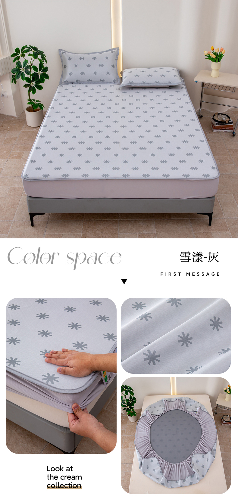 商品名称:凌云家纺 2025新款提花凉感冰丝席床笠款三明治凉席三件套 雪漾-灰