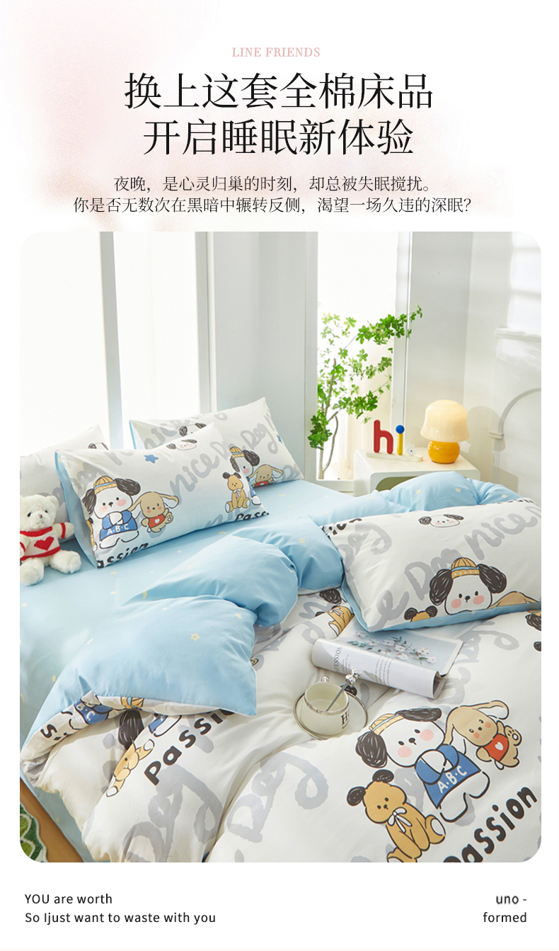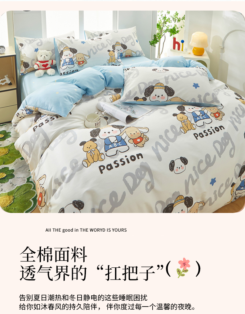 当前位置: 91家纺网 > 商品网购 > 床上用品 > 被套 > 黛妮雅 2025新款AB版全棉印花单被套床单枕套 萌酷狗