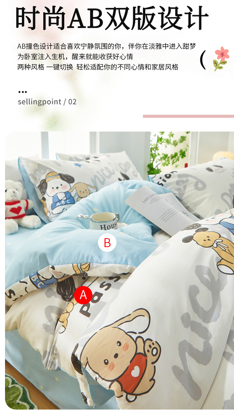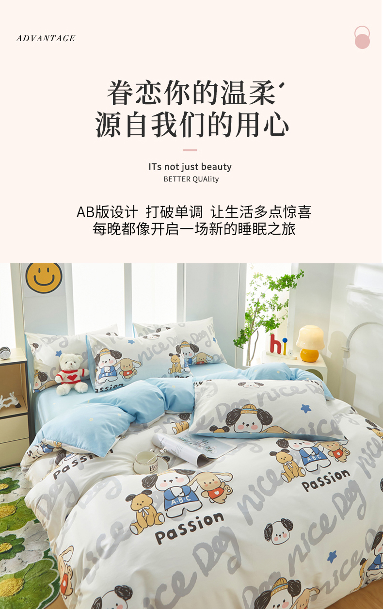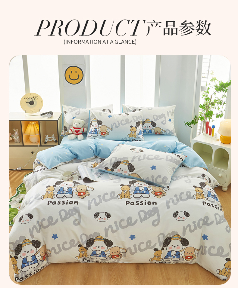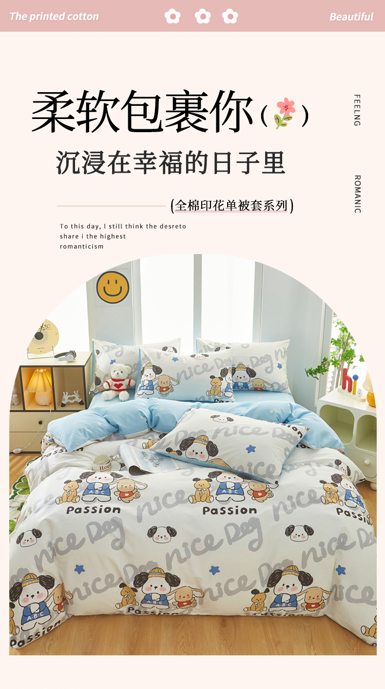 • 91家纺网 家纺一手货源 找家纺 黛妮雅 2025新款AB版全棉印花单被套床单枕套 萌酷狗