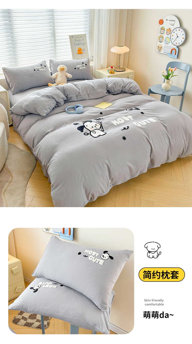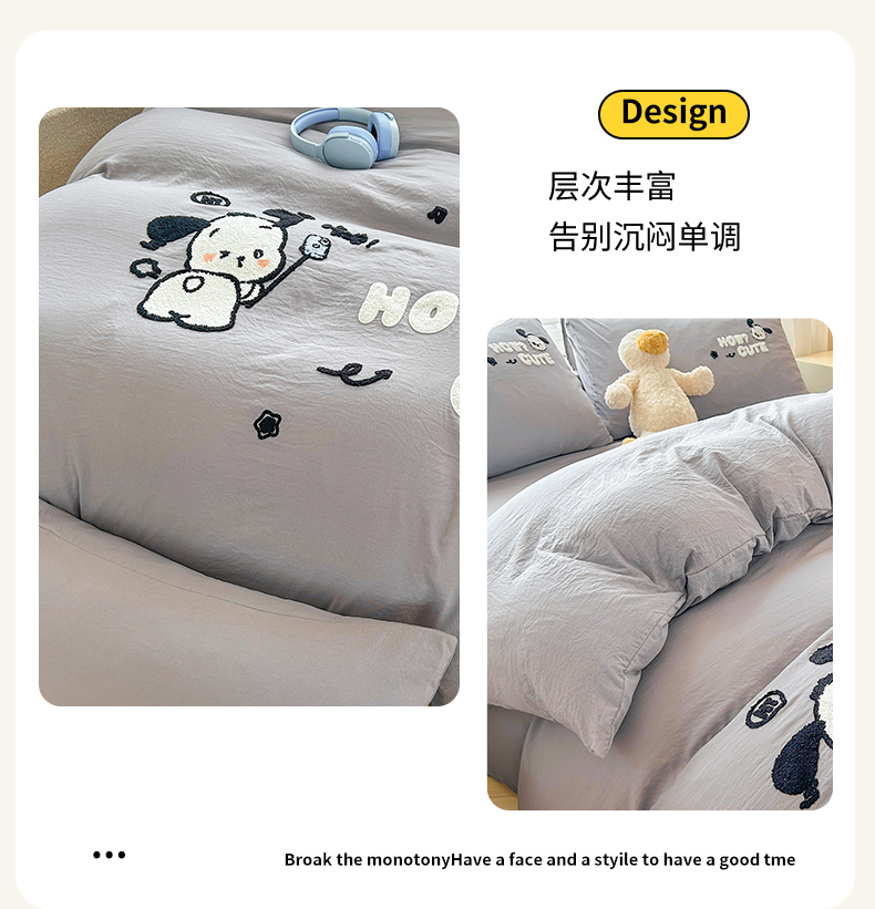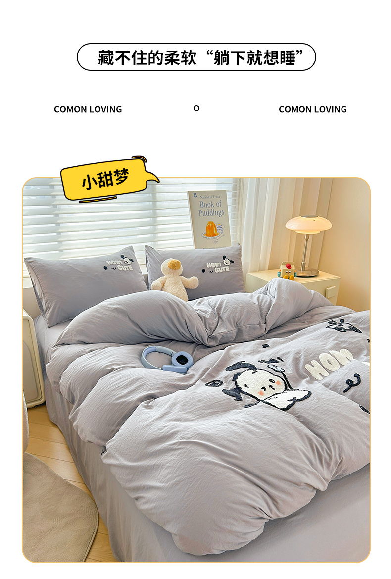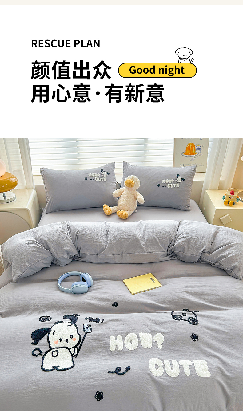 商品名称:包小包 2025新款糯糯绵毛巾绣可爱卡通爆款四件套 顽皮狗-灰