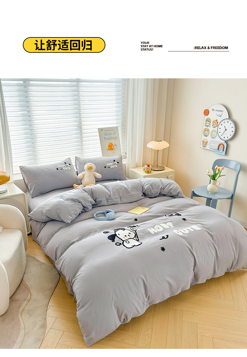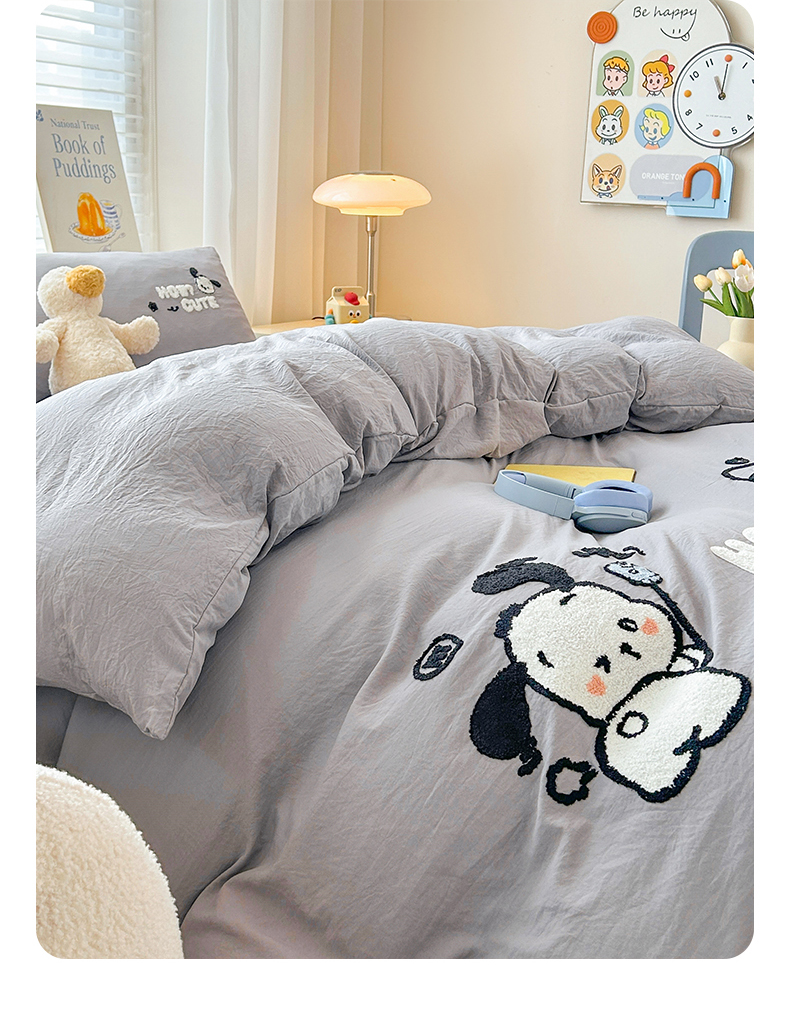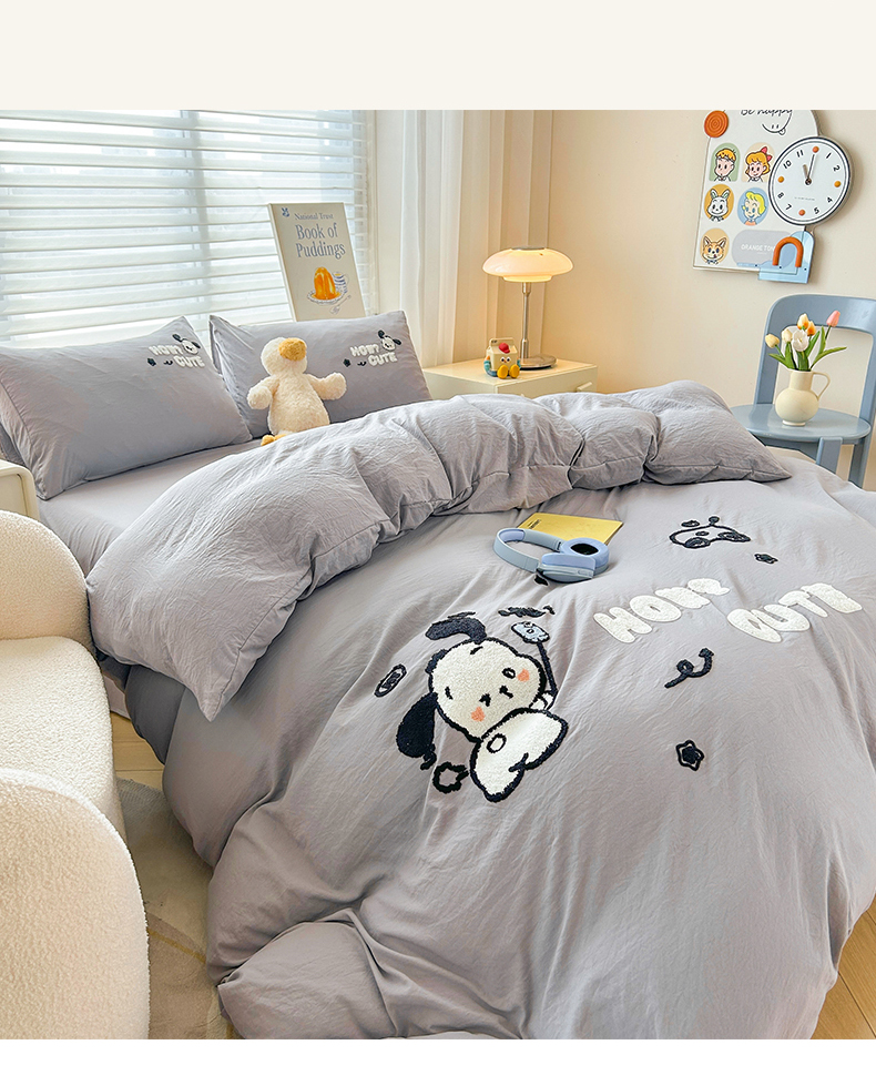 包小包 2025新款糯糯绵毛巾绣可爱卡通爆款四件套 顽皮狗-灰