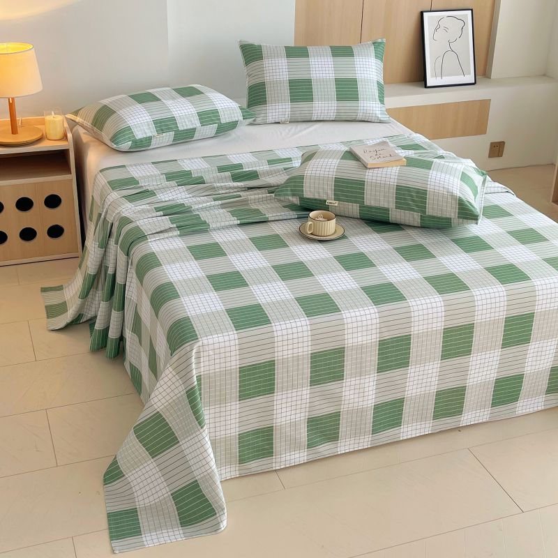 • 91家纺网 家纺一手货源 找家纺 萌飞 2025新款全棉纯棉老粗布席子凉席条格床单 休闲生活-绿
