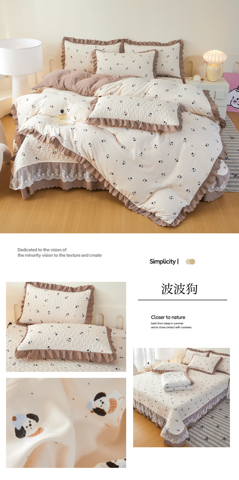 艺慕家纺 2025新款时尚印花针织棉床盖套件 波波狗