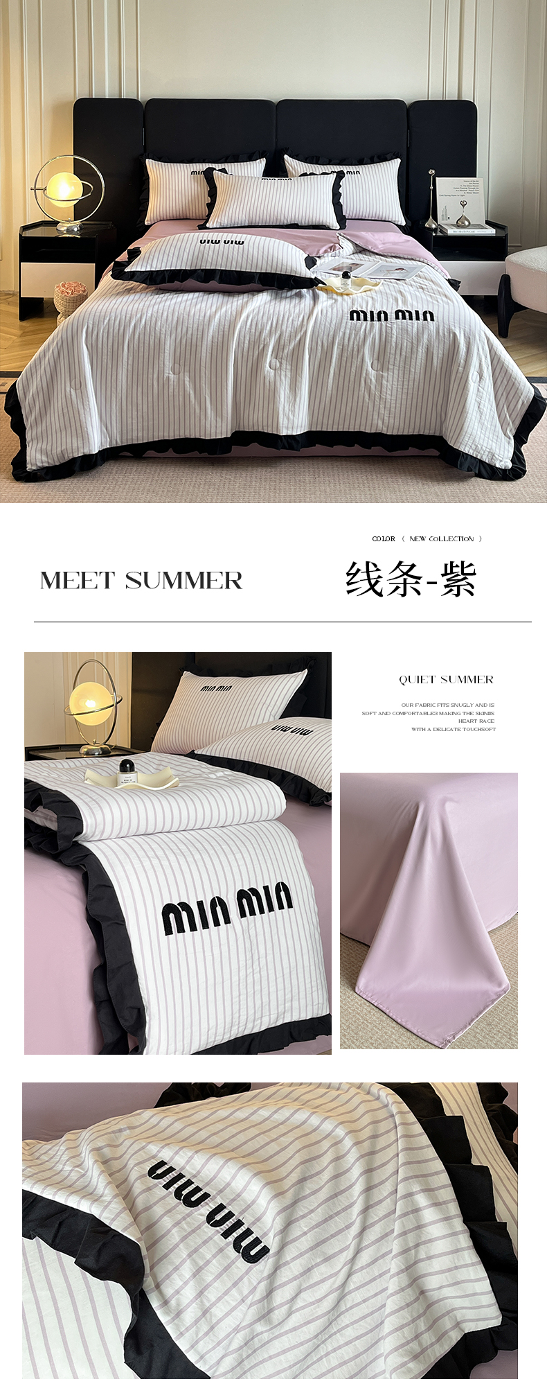 商品名称:苏源家居 2025新款亲肤棉刺绣夏被四件套-线条系列 线条-紫