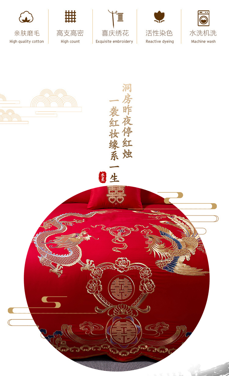 富之雅2024款全棉长绒棉婚庆四件套多件套 龙凤喜缘,龙凤喜缘