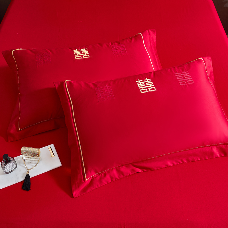 (总)富之雅婚庆 2025新款高克重全工艺牛奶绒宝宝绒刺绣婚庆单枕套,花田喜事,龙凤双喜,喜事连连,缘定三生