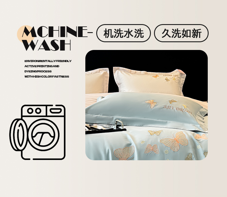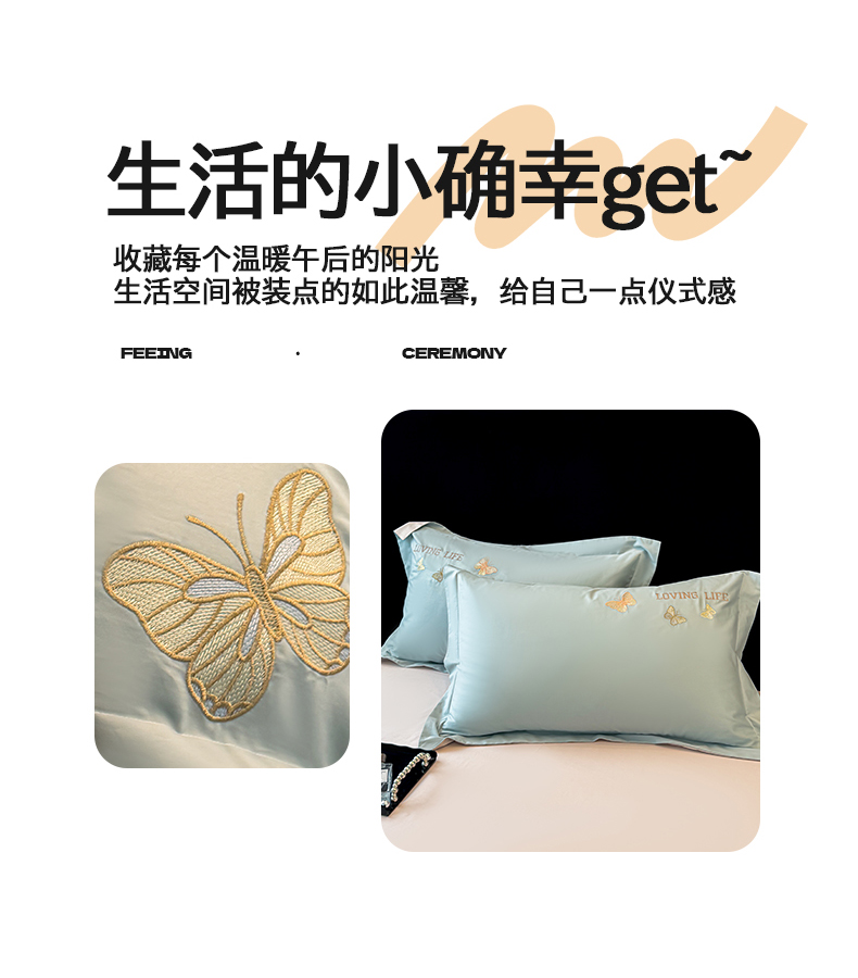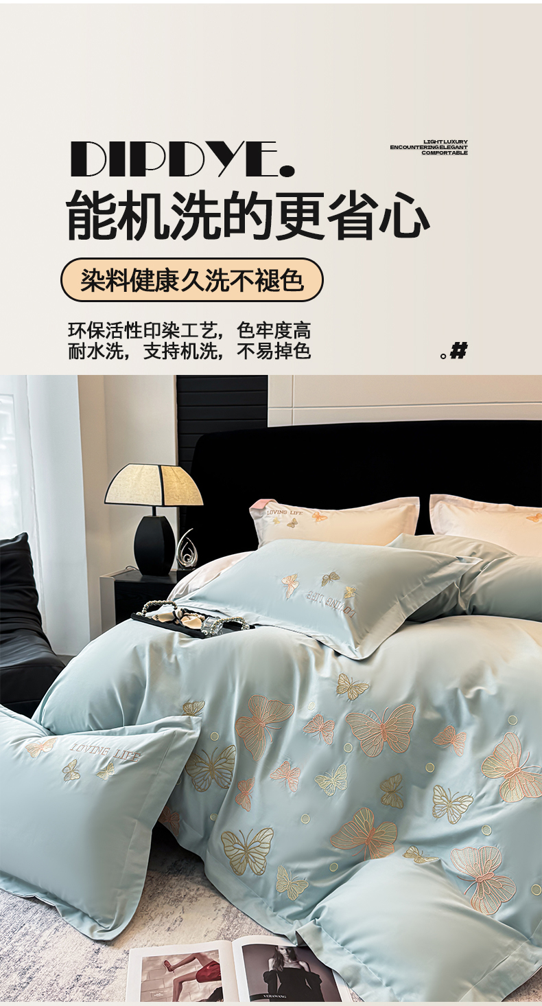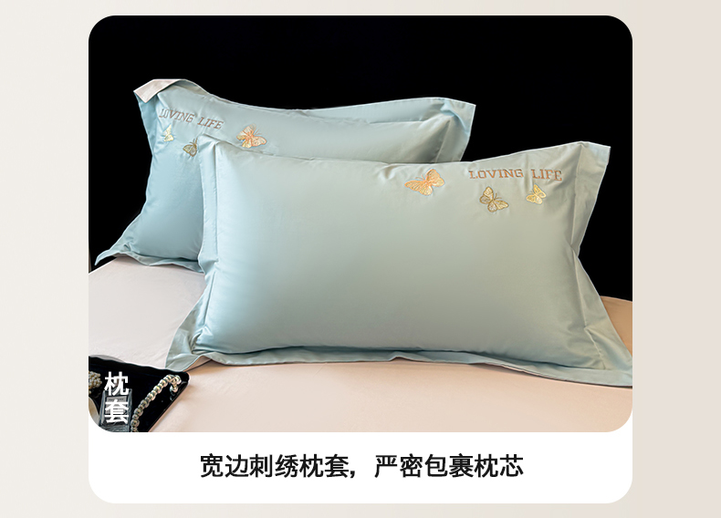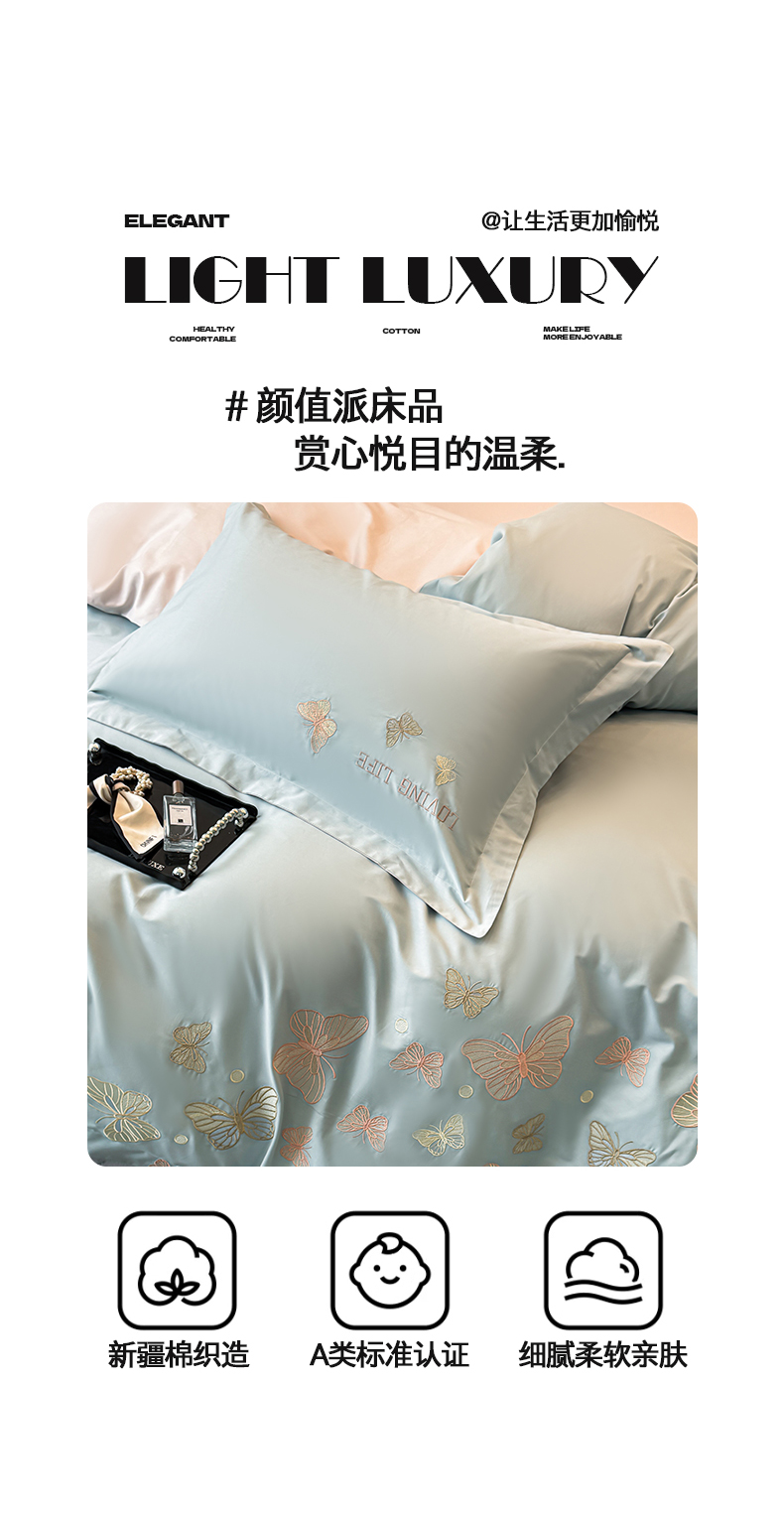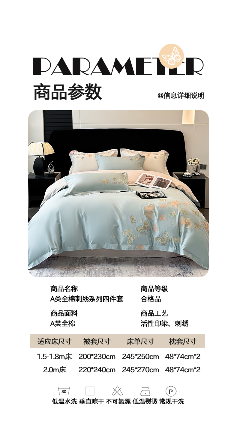 商品名称:典曼家纺 2025新款 A类高精密40支13374喷气绣花四件套 【带礼盒】 蝴蝶花园-蓝
