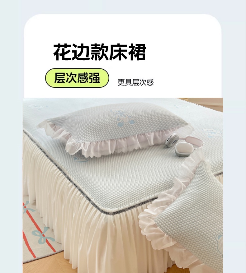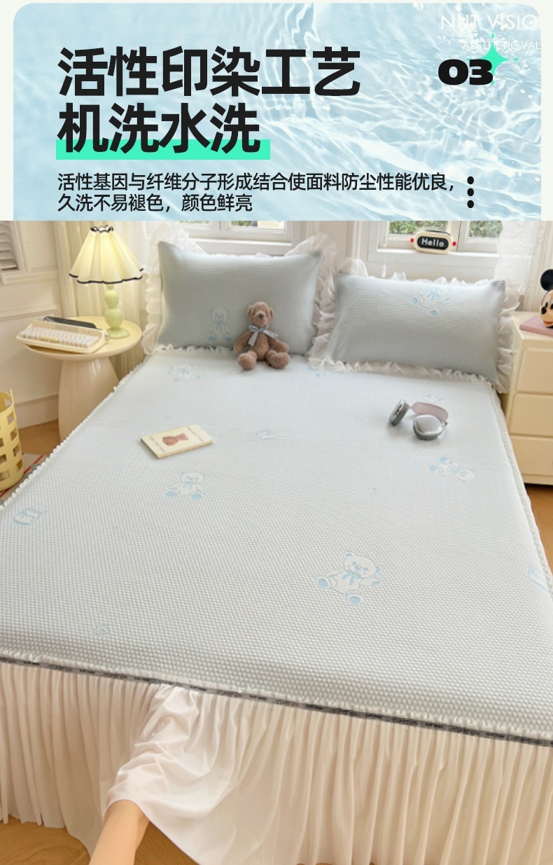 当前位置: 91家纺网 > 商品网购 > 床上用品 > 床裙 > 圣比熊 2025新款凉感冰豆豆凉席床裙冰丝席可水洗软席三件套空调席 凉豆豆-小熊蓝