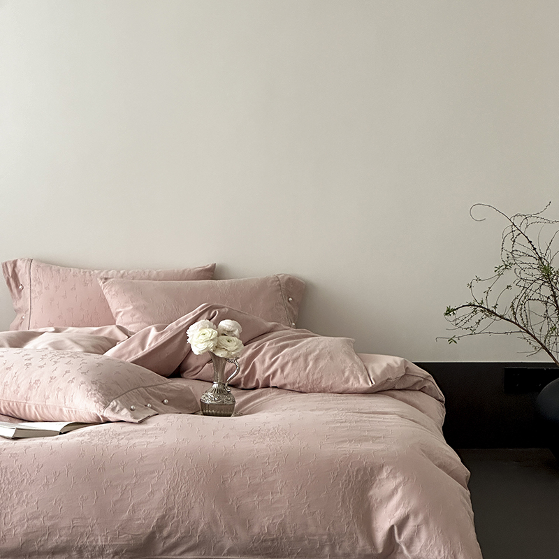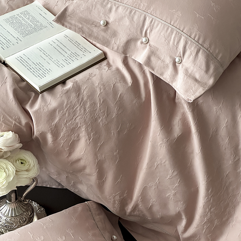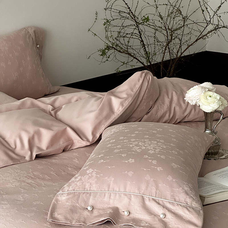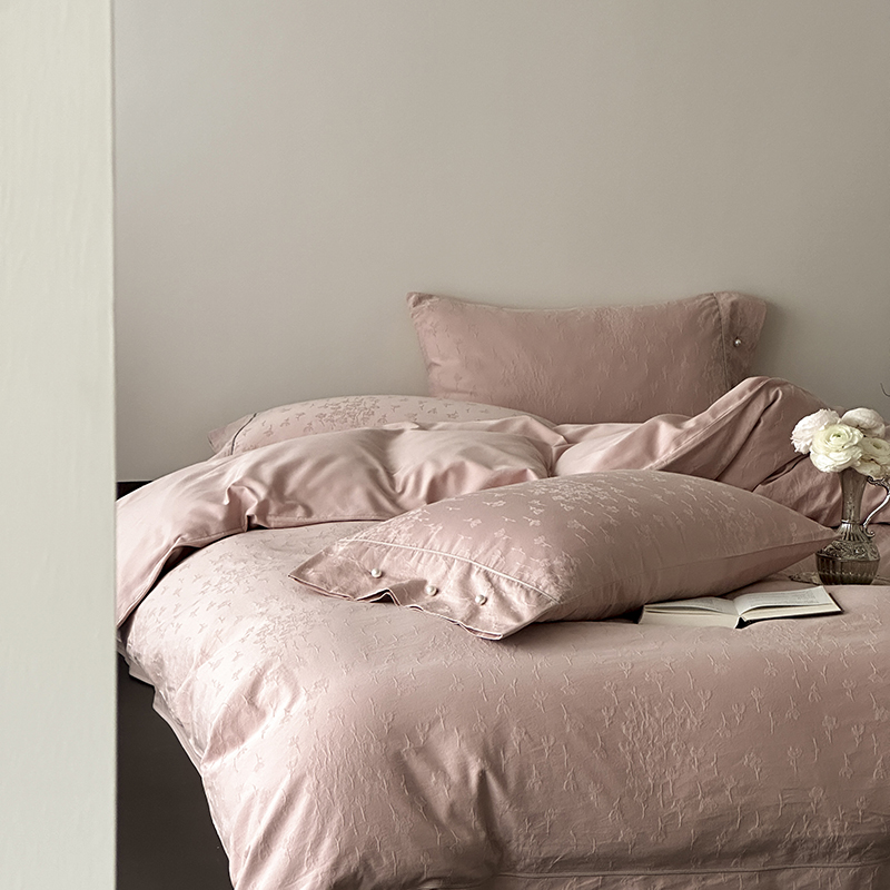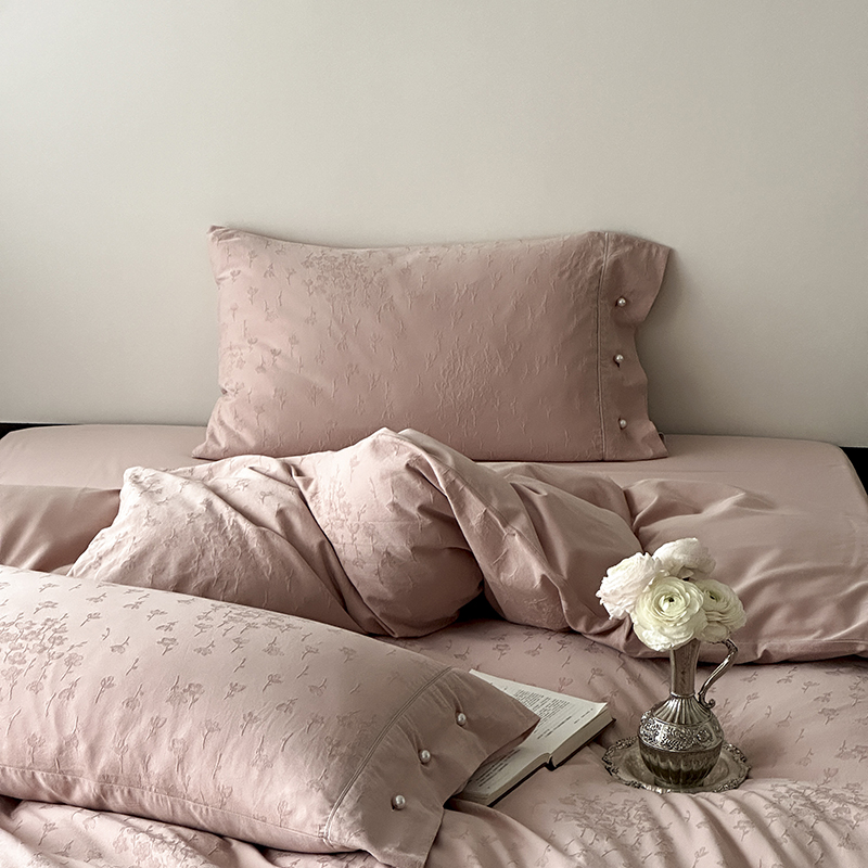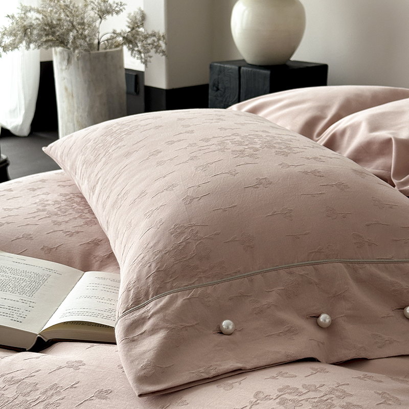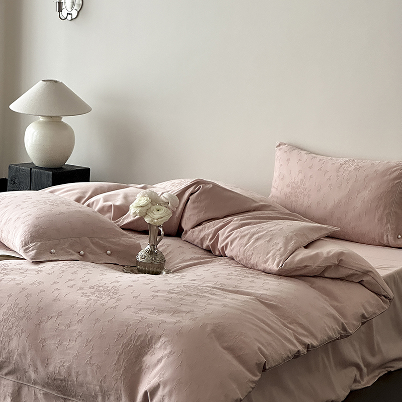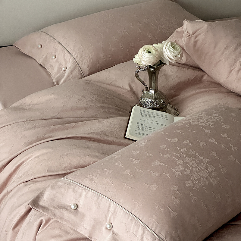 涞澳家纺 2025新款全棉水洗棉提花珍珠纽扣四件套 花间拾梦-海棠粉