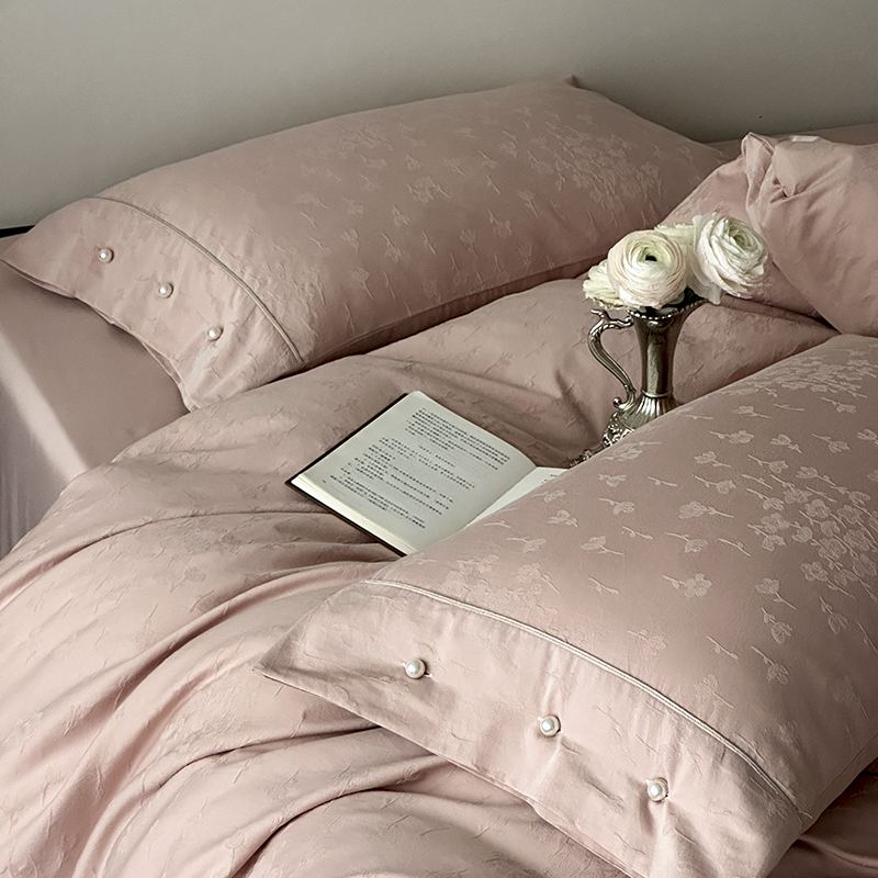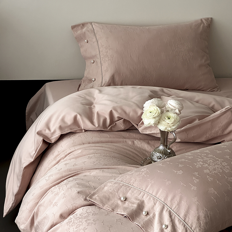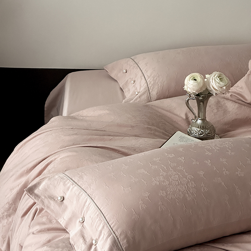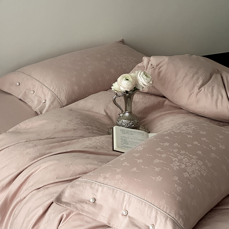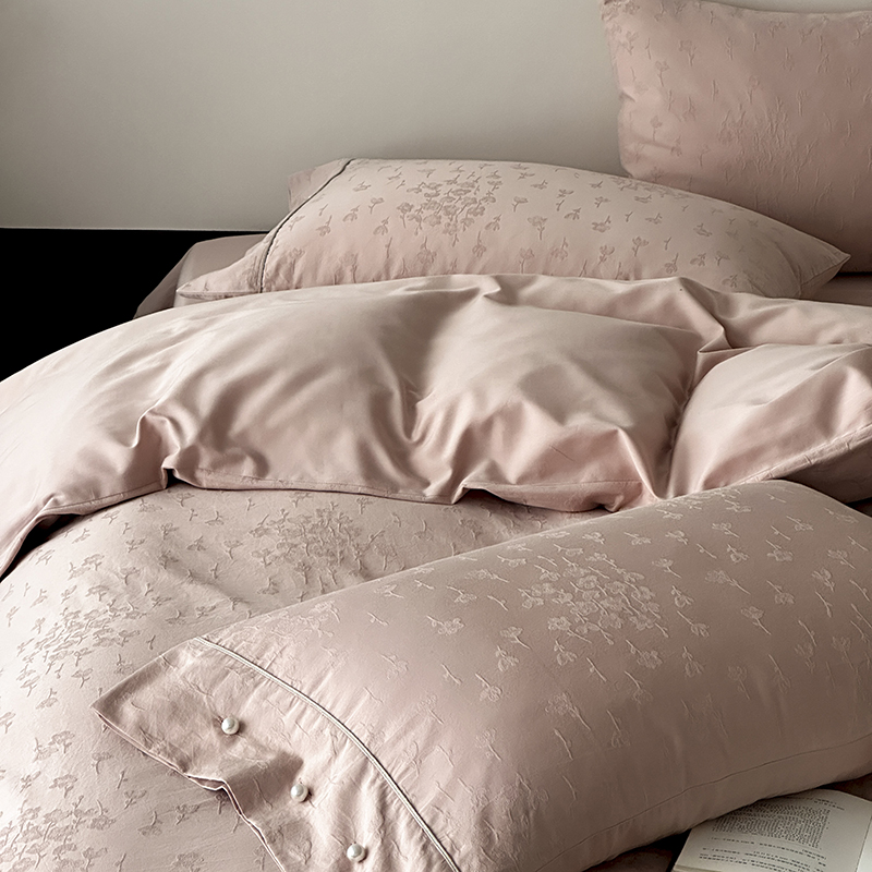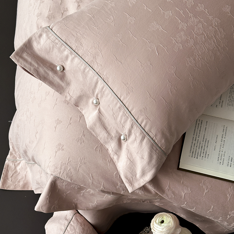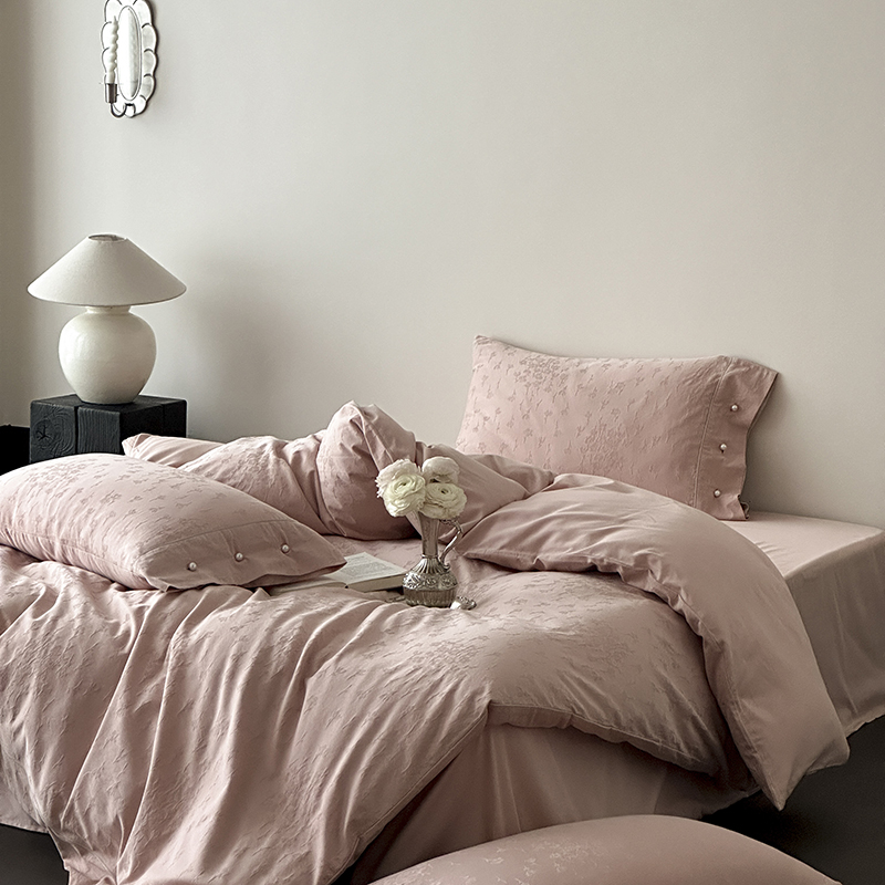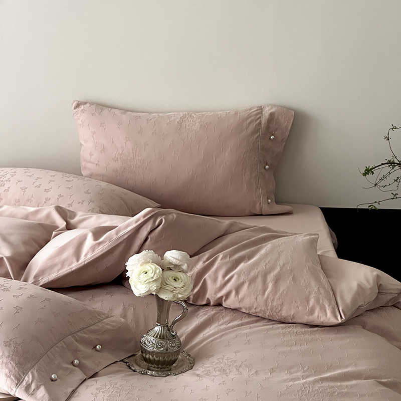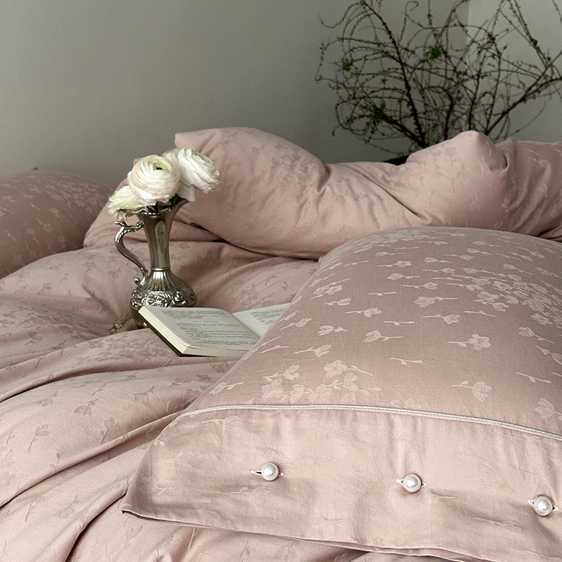 涞澳家纺 2025新款全棉水洗棉提花珍珠纽扣四件套 花间拾梦-海棠粉