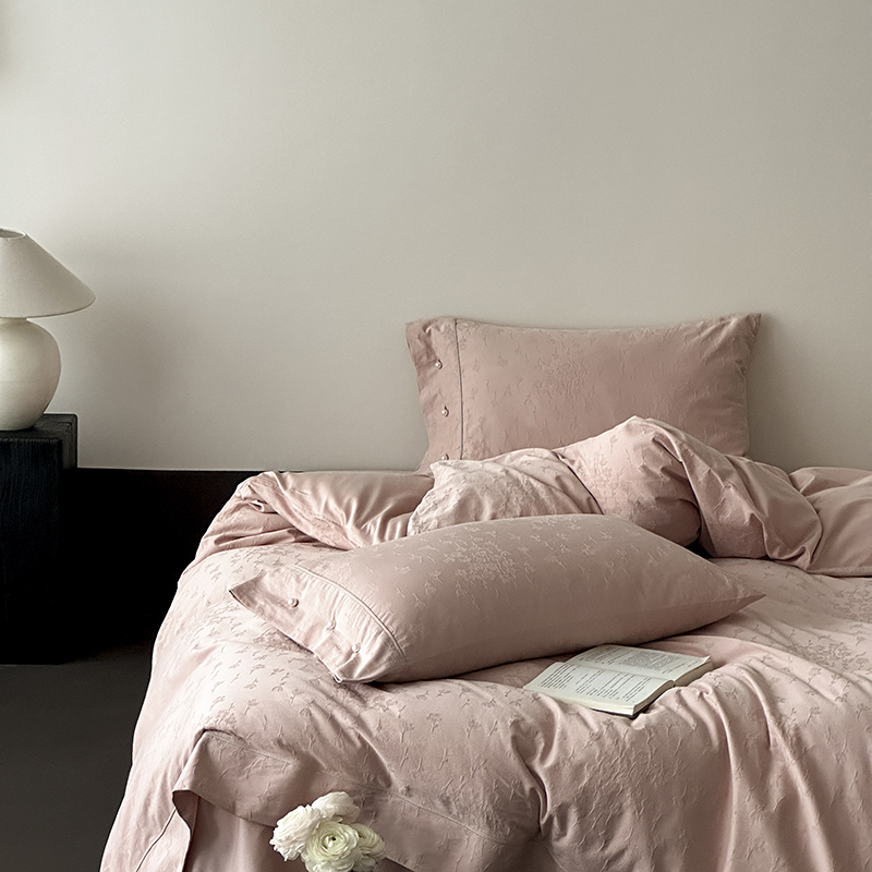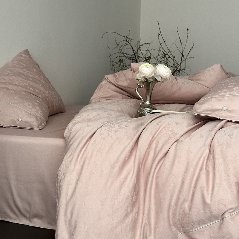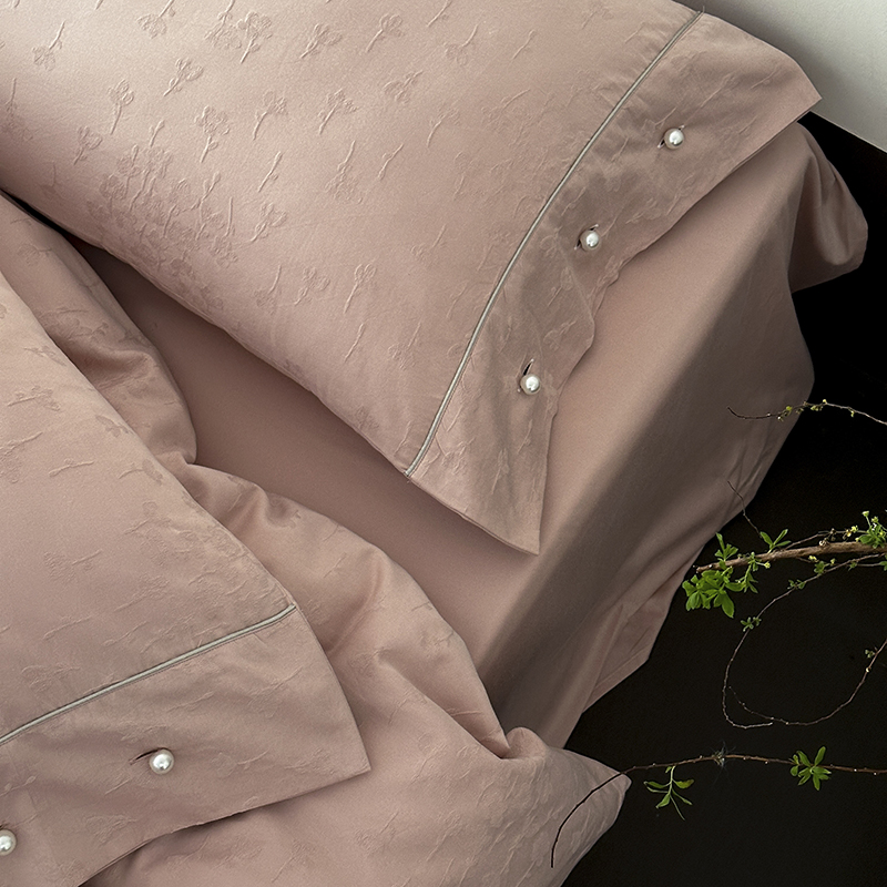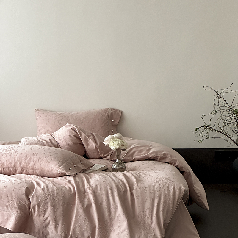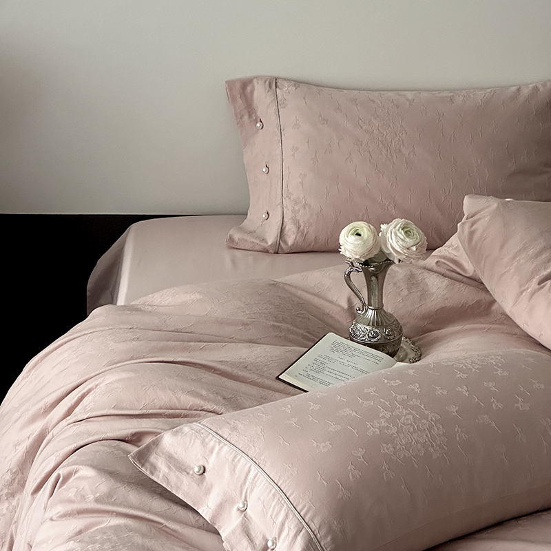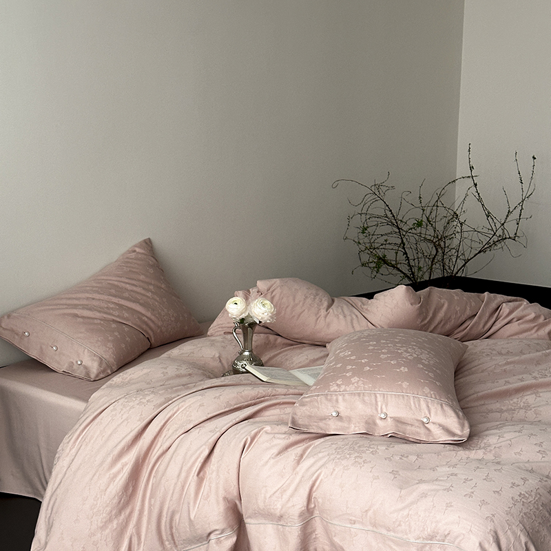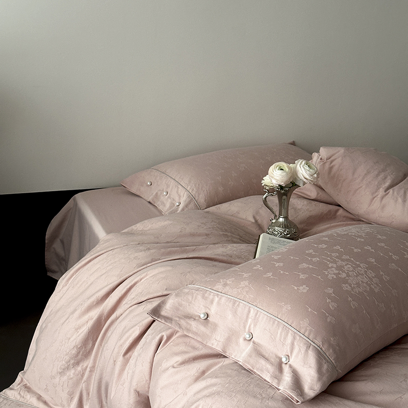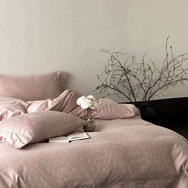 涞澳家纺 2025新款全棉水洗棉提花珍珠纽扣四件套 花间拾梦-海棠粉