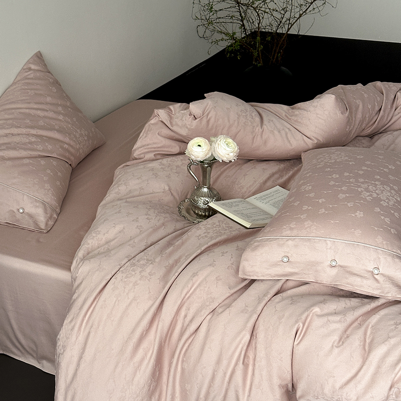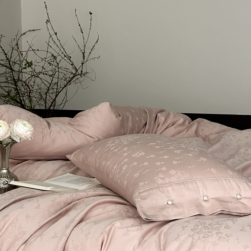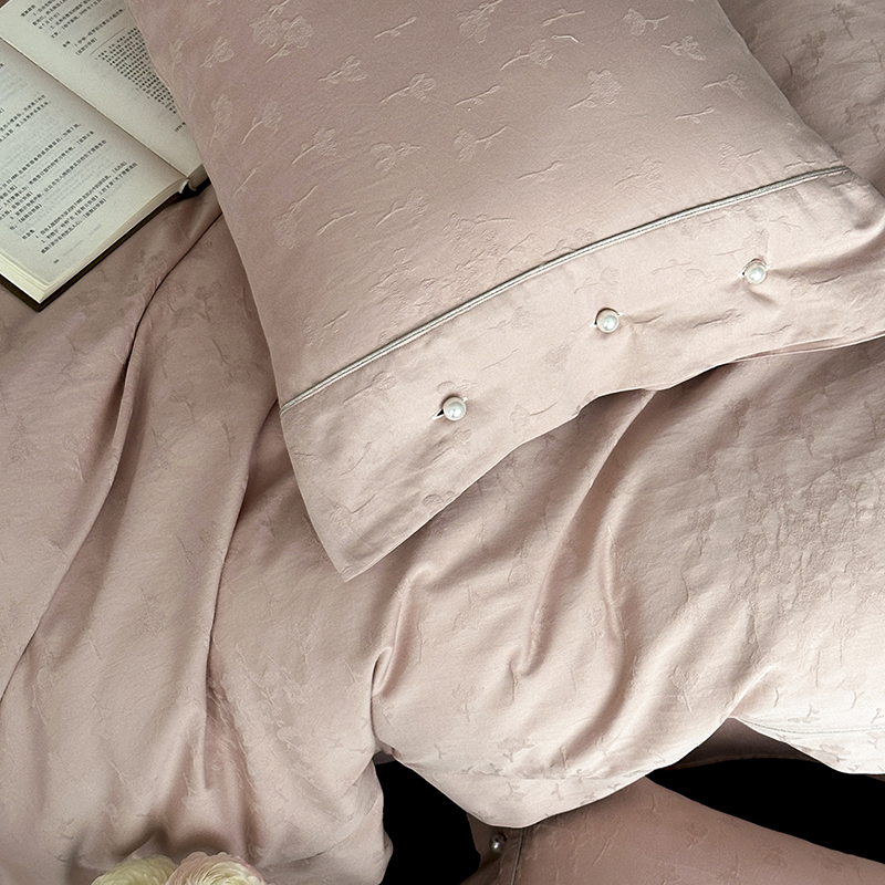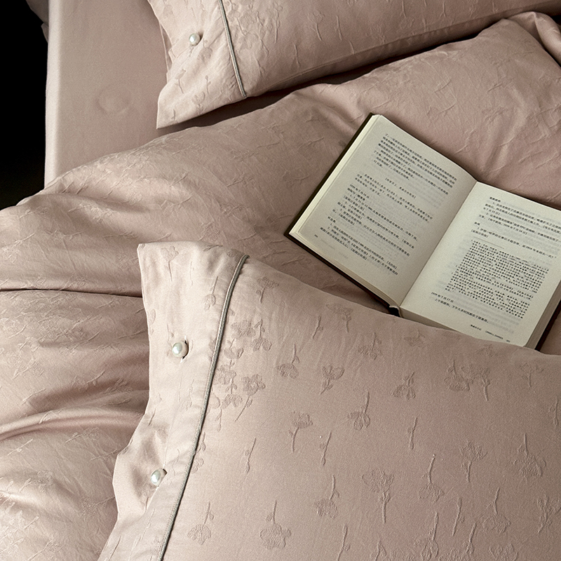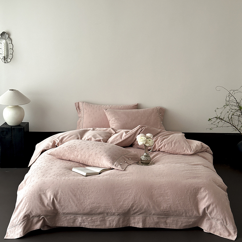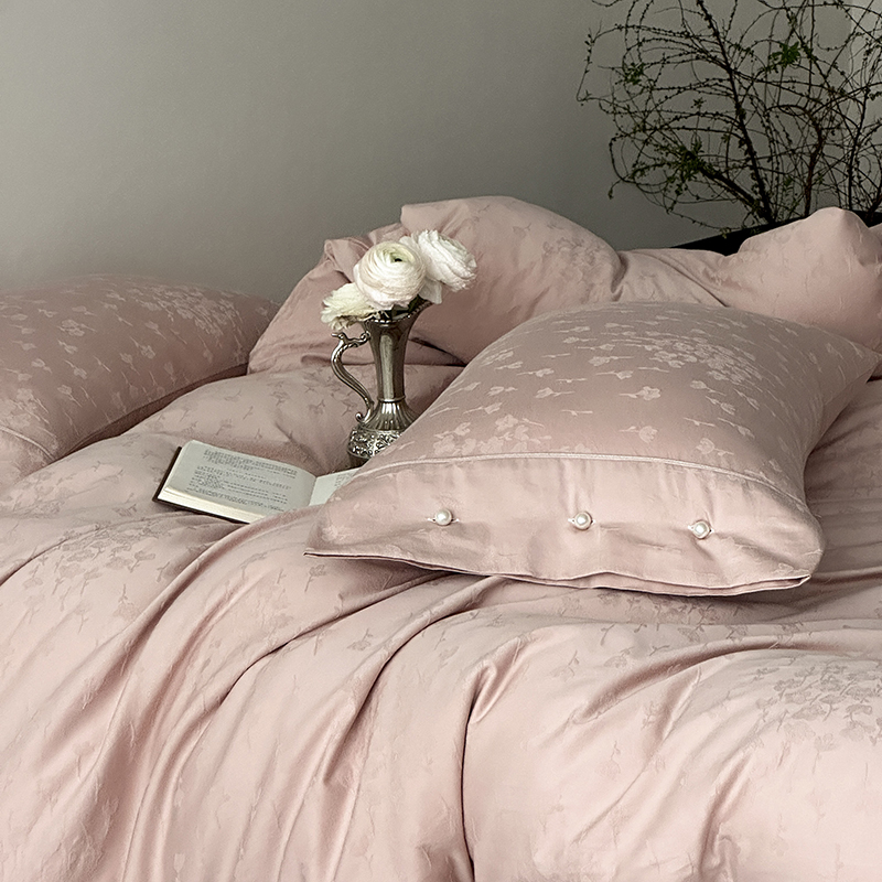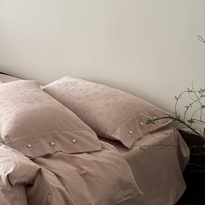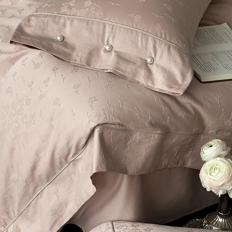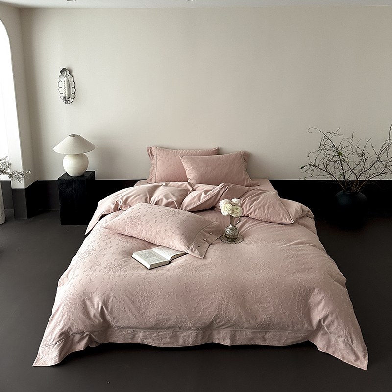 涞澳家纺 2025新款全棉水洗棉提花珍珠纽扣四件套 花间拾梦-海棠粉