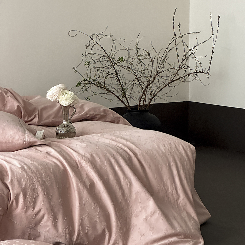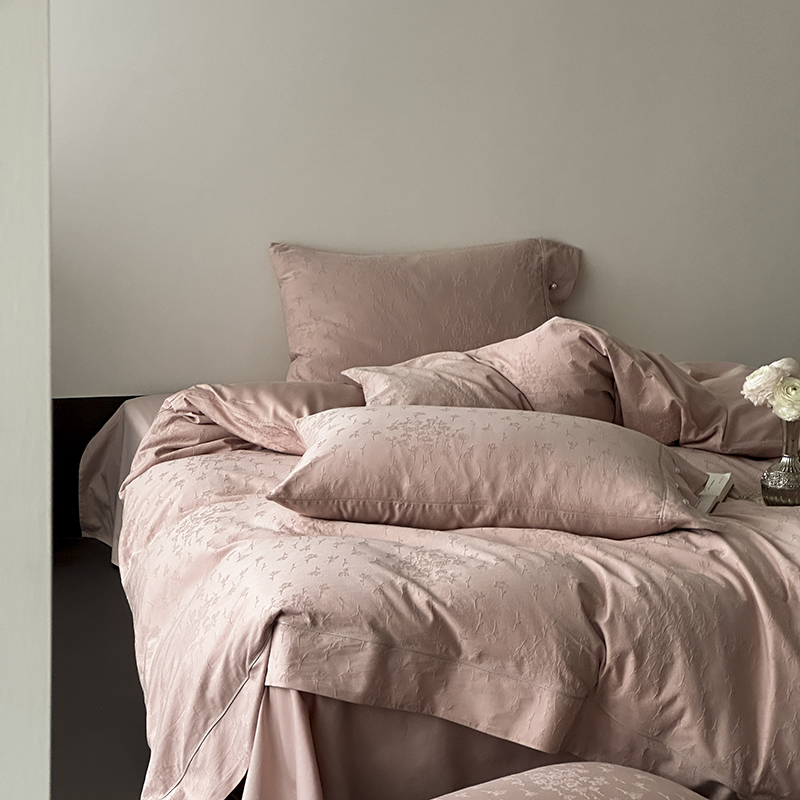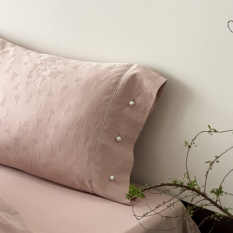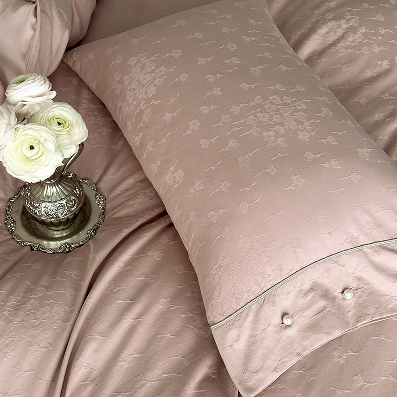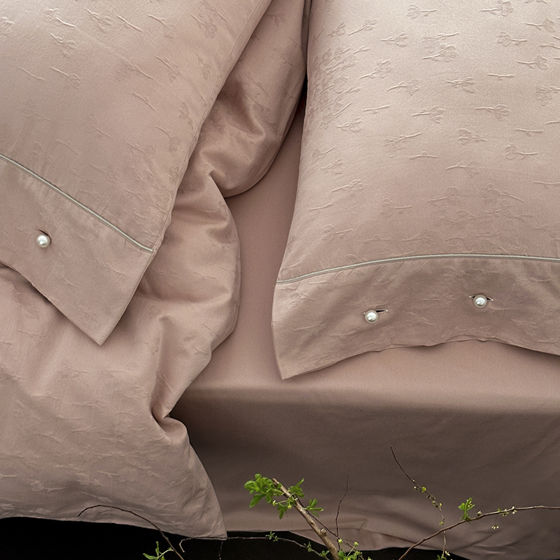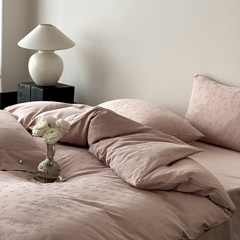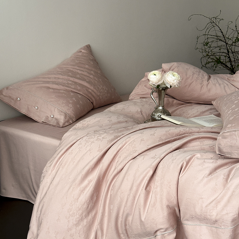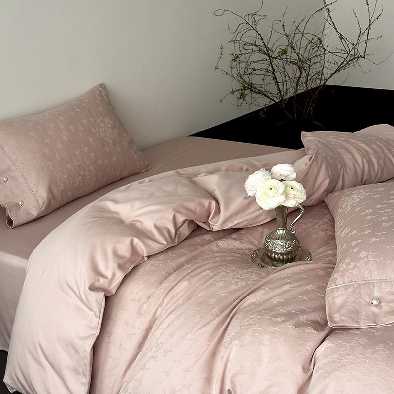 涞澳家纺 2025新款全棉水洗棉提花珍珠纽扣四件套 花间拾梦-海棠粉