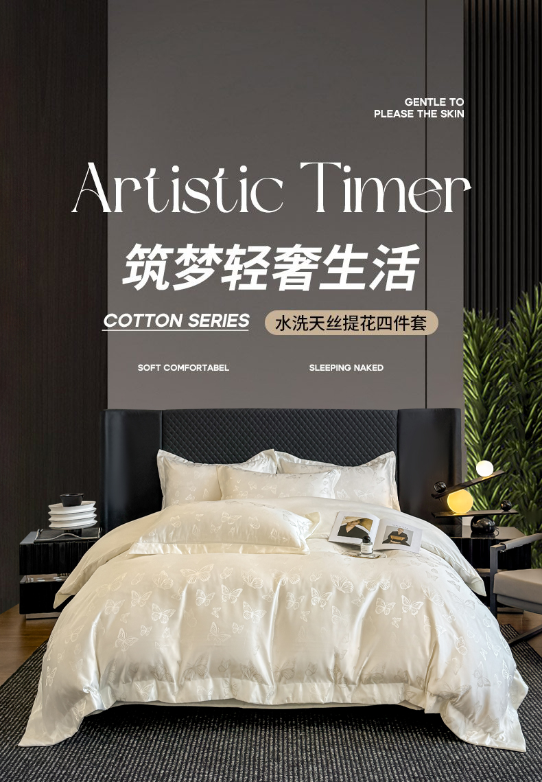(总)狂想家 2025新款高奢提花水洗天丝系列四件套,情结奶昔白,情结轻奢粉,情结高级灰,蝶之恋高级灰,蝶之恋奶昔白,蝶之恋轻奢粉