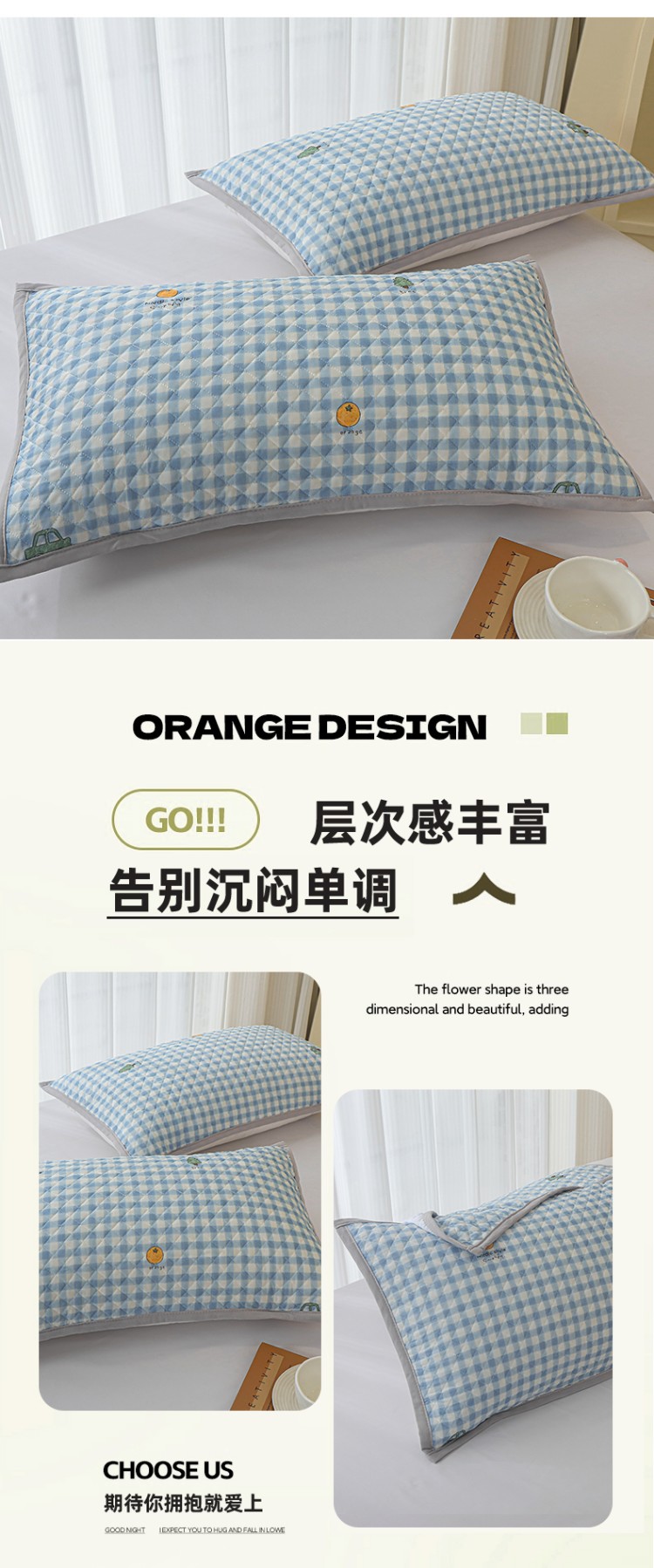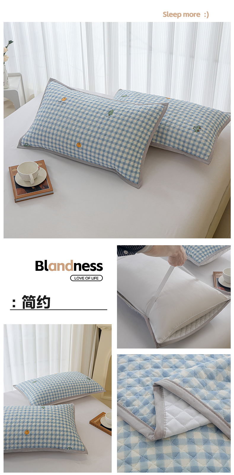 (总)美宜家 2026新款全棉枕头套高密色织水洗加棉绗缝高端纯色枕套,极简山灰,极简米其,极简兰灰,极简仔兰