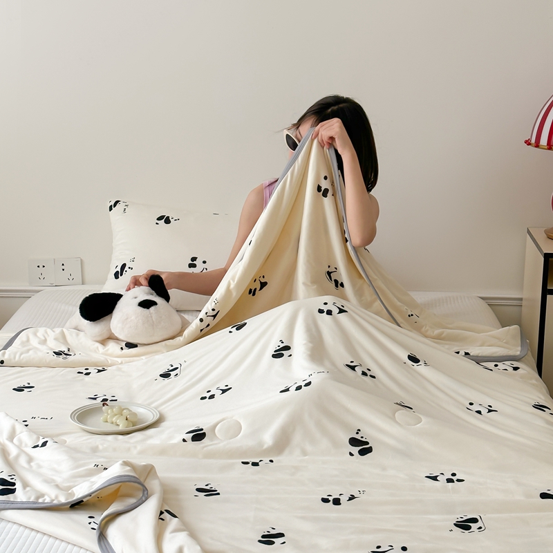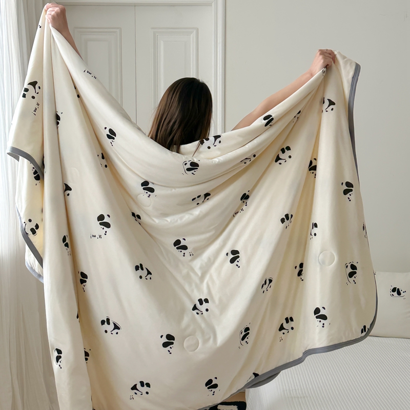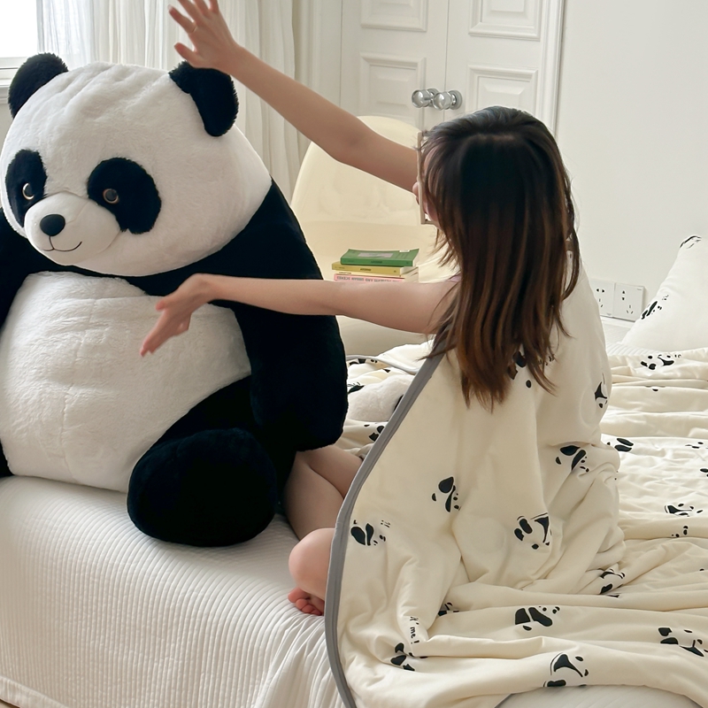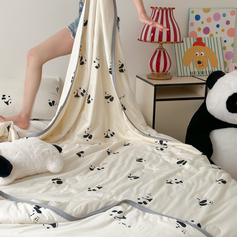 觅糖家纺 2025新款软糯针织云柔大豆夏被 奶油熊猫