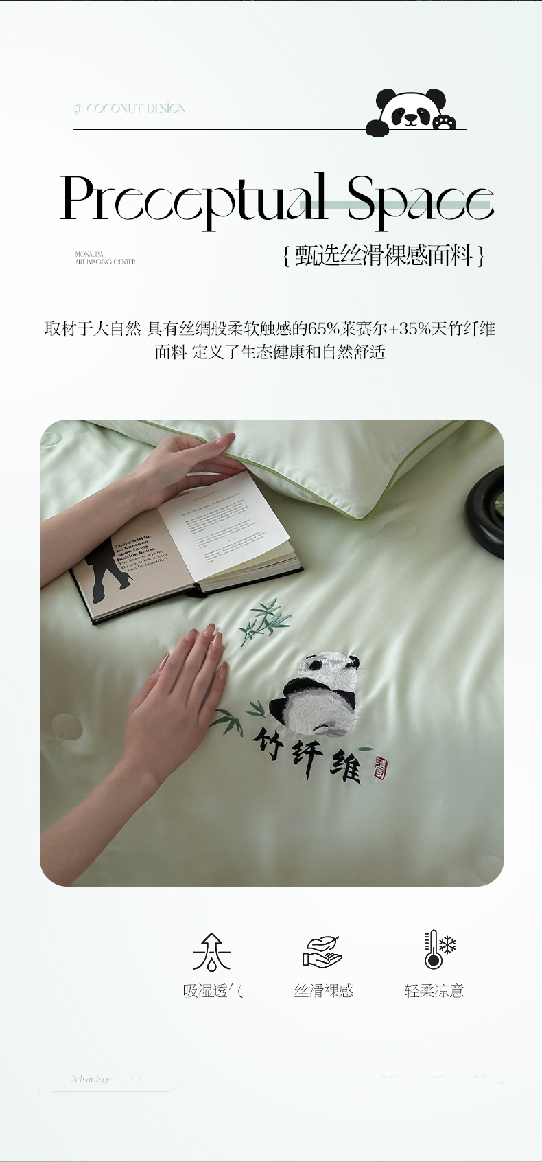 卡巴伦2025新款A类天竹刺绣蚕蛹蛋白纤维夏被四件套 熊猫-苹果绿