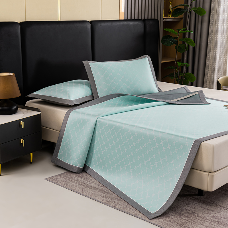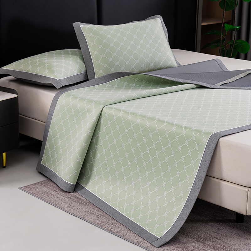 (总)2023新款超精密冰丝席-小斜纹系列-床笠款藤席凉席竹席,粉色,蓝色,绿色,银灰