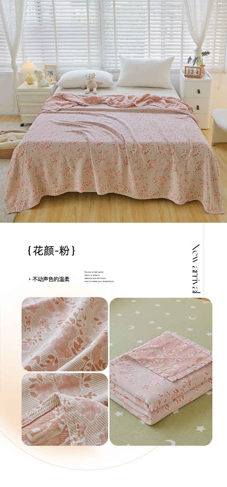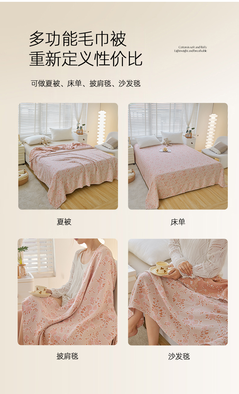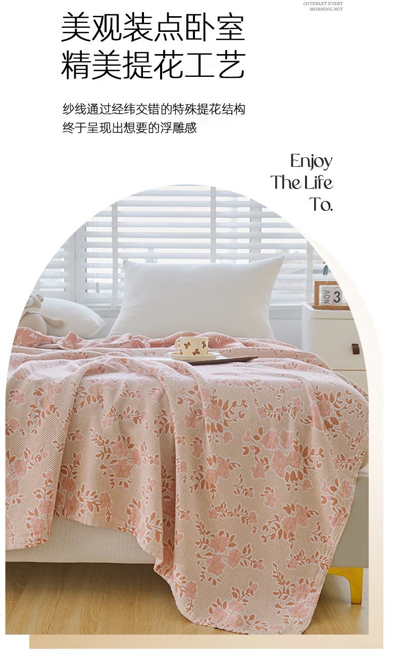 商品名称:悦然毛巾被2025新款全棉斜纹提花毛巾被 花颜-粉