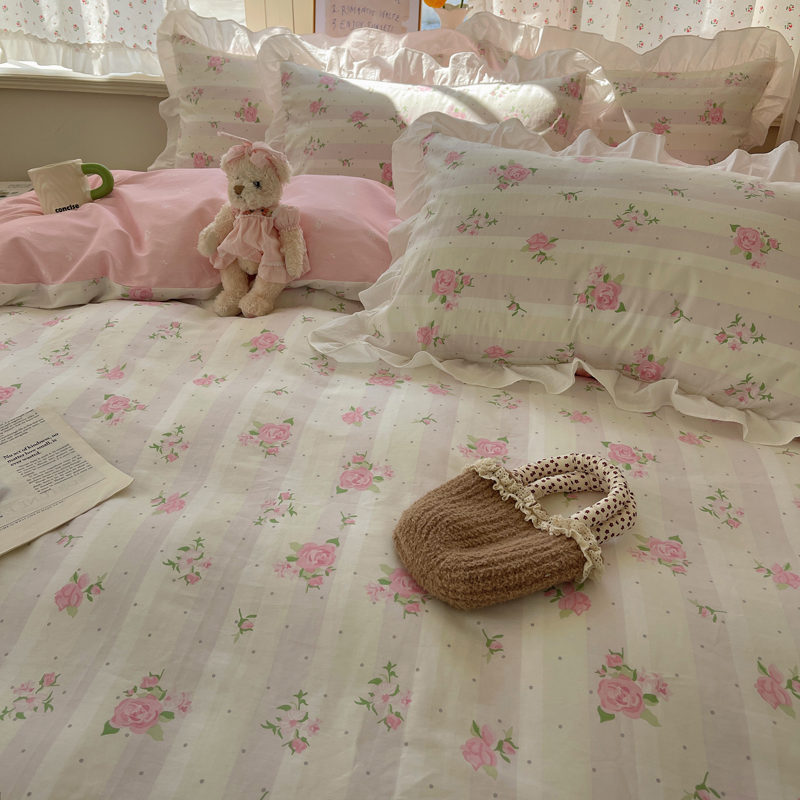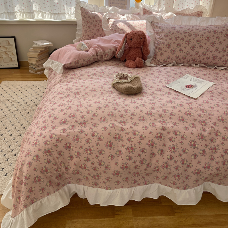 桃喜2025新款全棉纯棉碎花花边款13070四件套 系列一 韶棠浅花边款