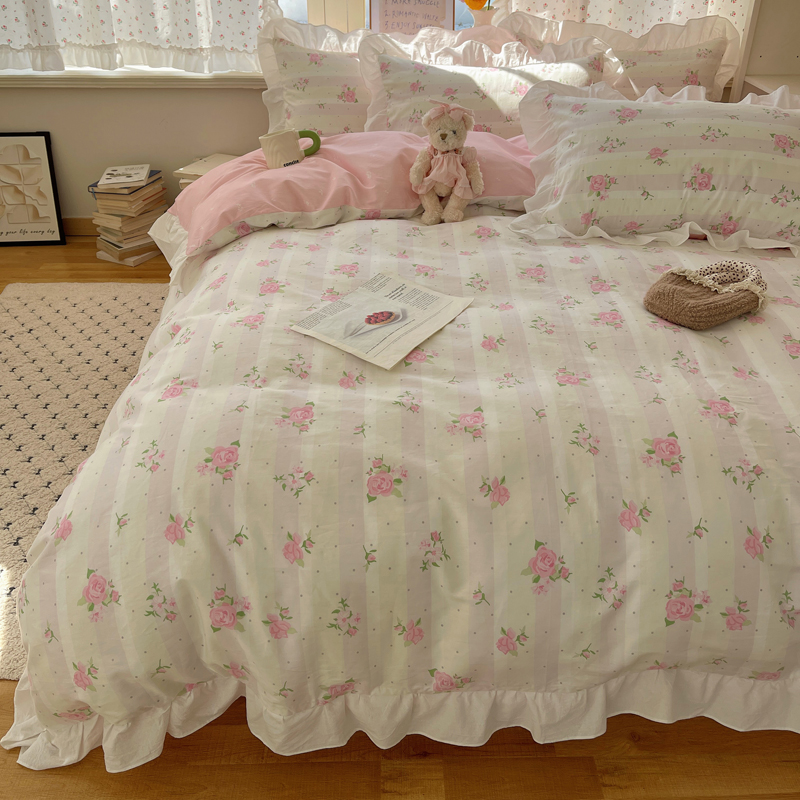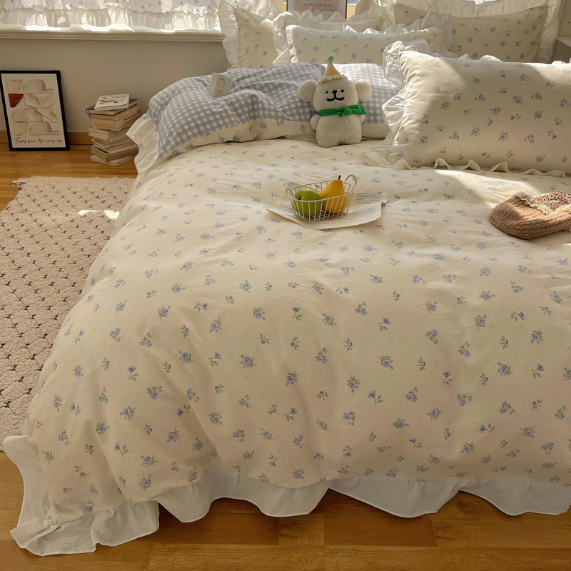(总)桃喜 2026新款韩式全棉纯棉花边款四件套 会员-3,粉格拼布碎花(花边款),馥郁蓝(花边款),赫本(花边款),绿格拼布碎花(花边款),山茶(花边款),香芋紫格碎花(花边款),早春花园(花边款)